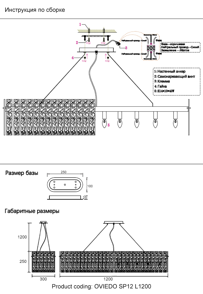 Люстра Crystal Lux OVIEDO SP12 L1200