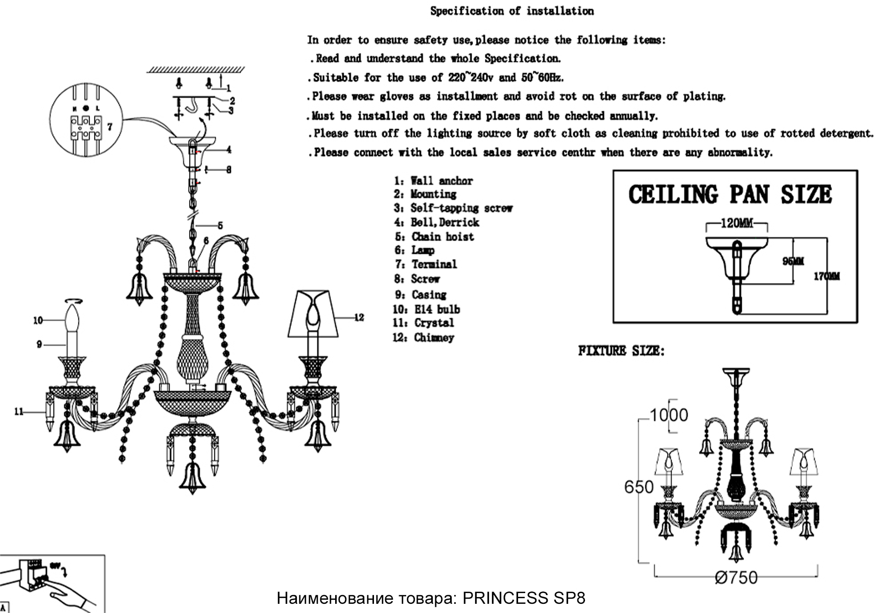 Люстра Crystal Lux PRINCESS SP8