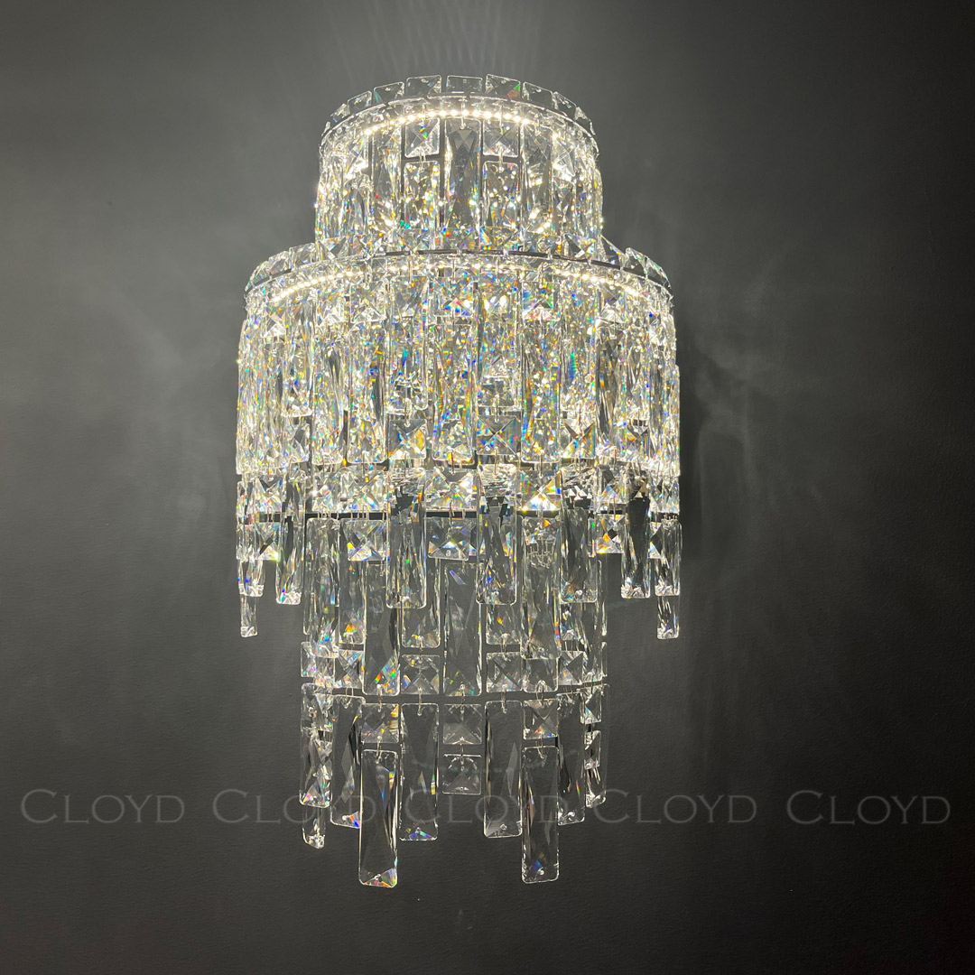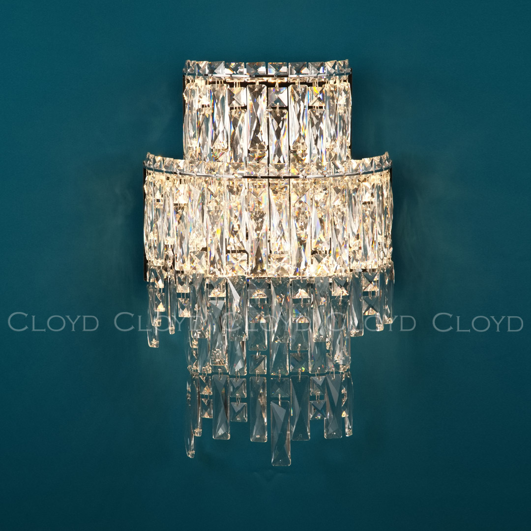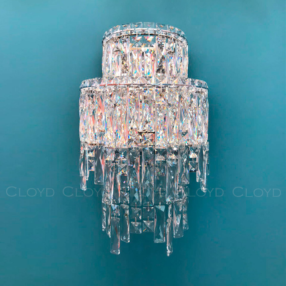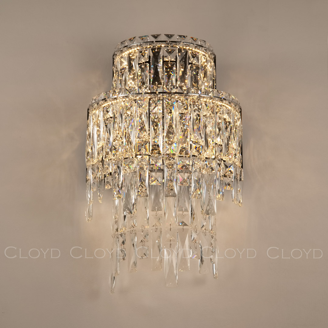 Бра Cloyd ANTREA (Клойд Антрея) W2 / арт.20340, ширина: 30 см. высота: 48 см глубина: 18 см, источник света: LED 20 Вт (3000 К, теплый свет), цвет металла - хром блестящий. Особенности: хрусталь К9.Гарантия: 1 год.