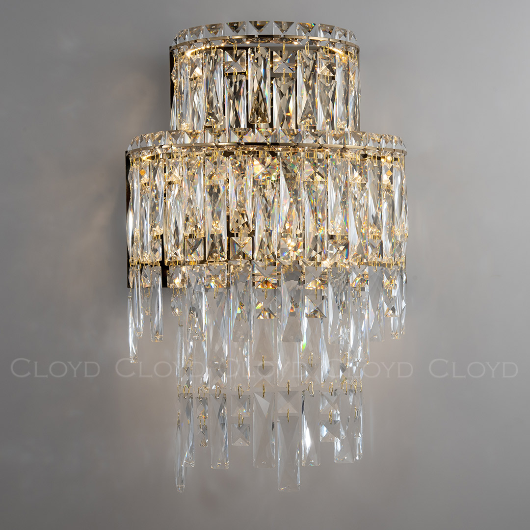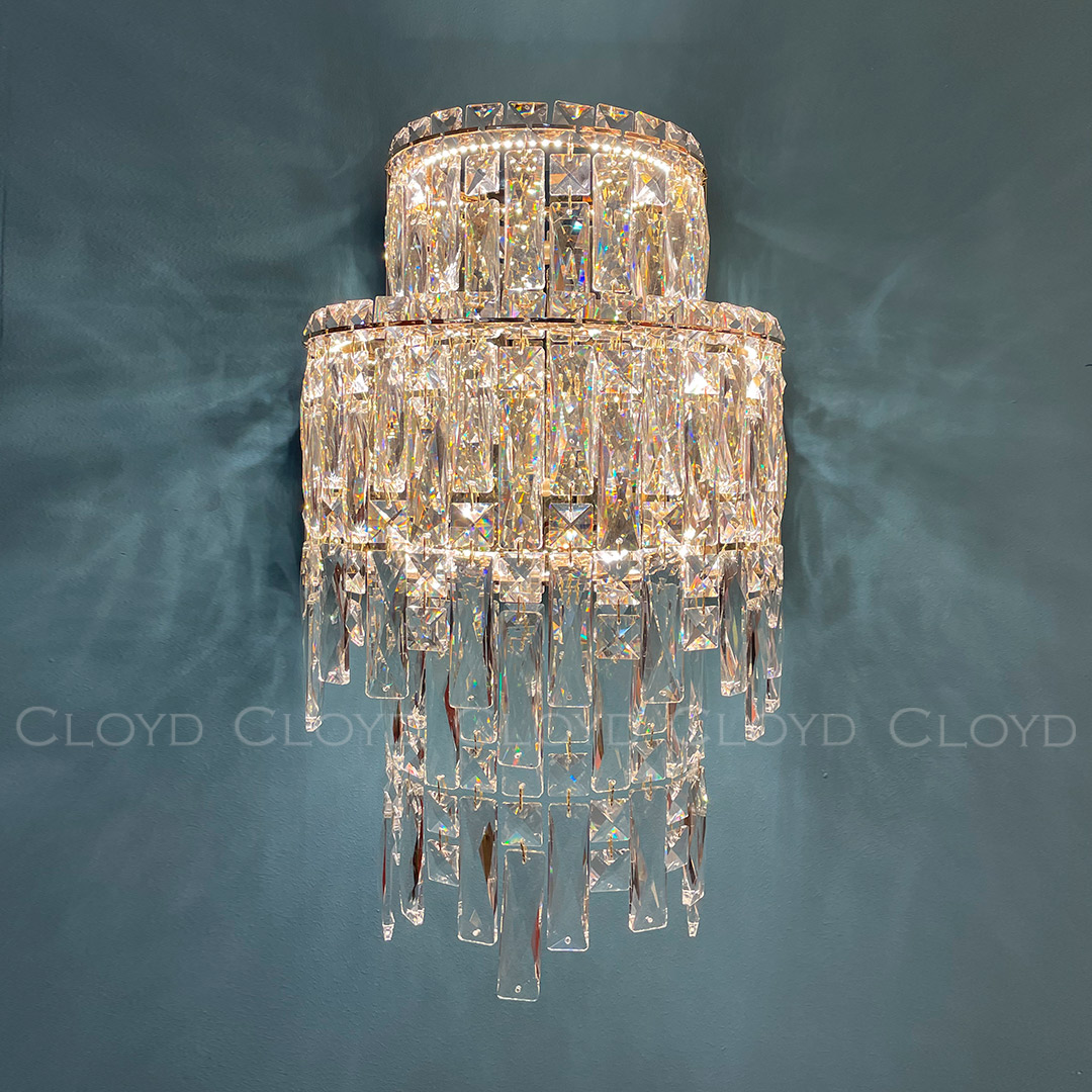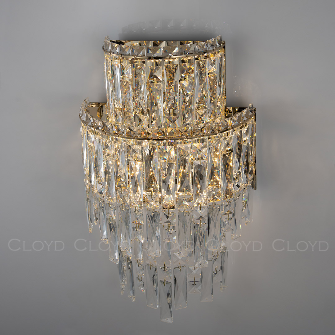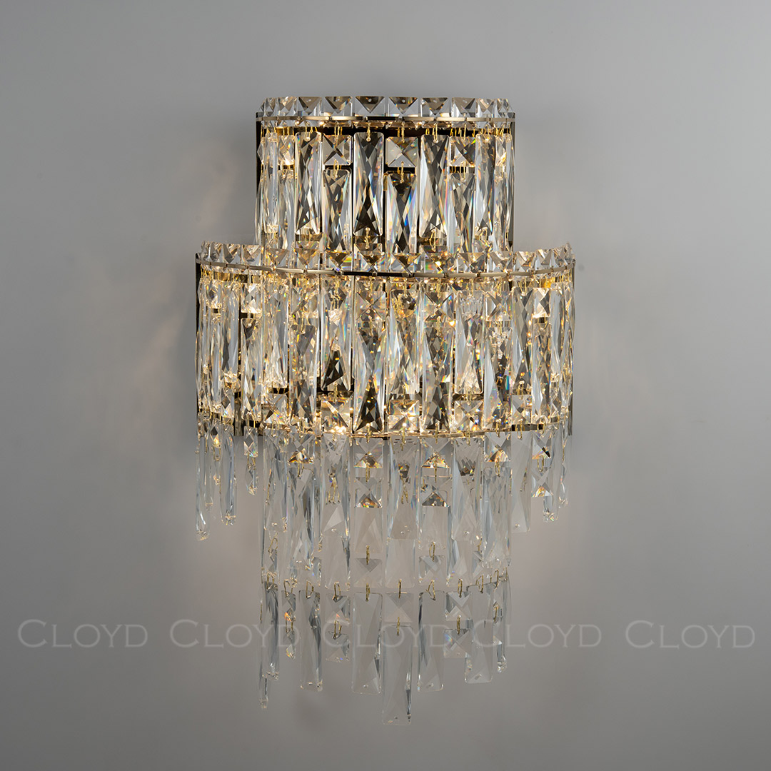 Бра Cloyd ANTREA (Клойд Антрея) W2 / арт.20355, ширина: 30 см. высота: 48 см глубина: 18 см, источник света: LED 20 Вт (3000 К, теплый свет), цвет металла - золото блестящее. Особенности: хрусталь К9.Гарантия: 1 год.