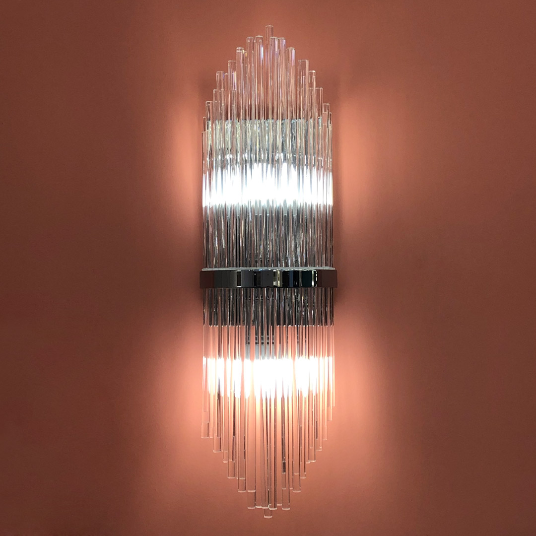 Бра Cloyd CADANCE (Клойд Каданс) W2 / арт.20138, ширина: 18 см. высота: 60 см глубина: 12 см, источник света: E14 х 2 шт, цвет металла - хром блестящий. Гарантия: 1 год.