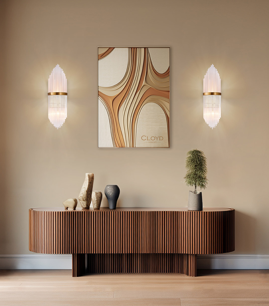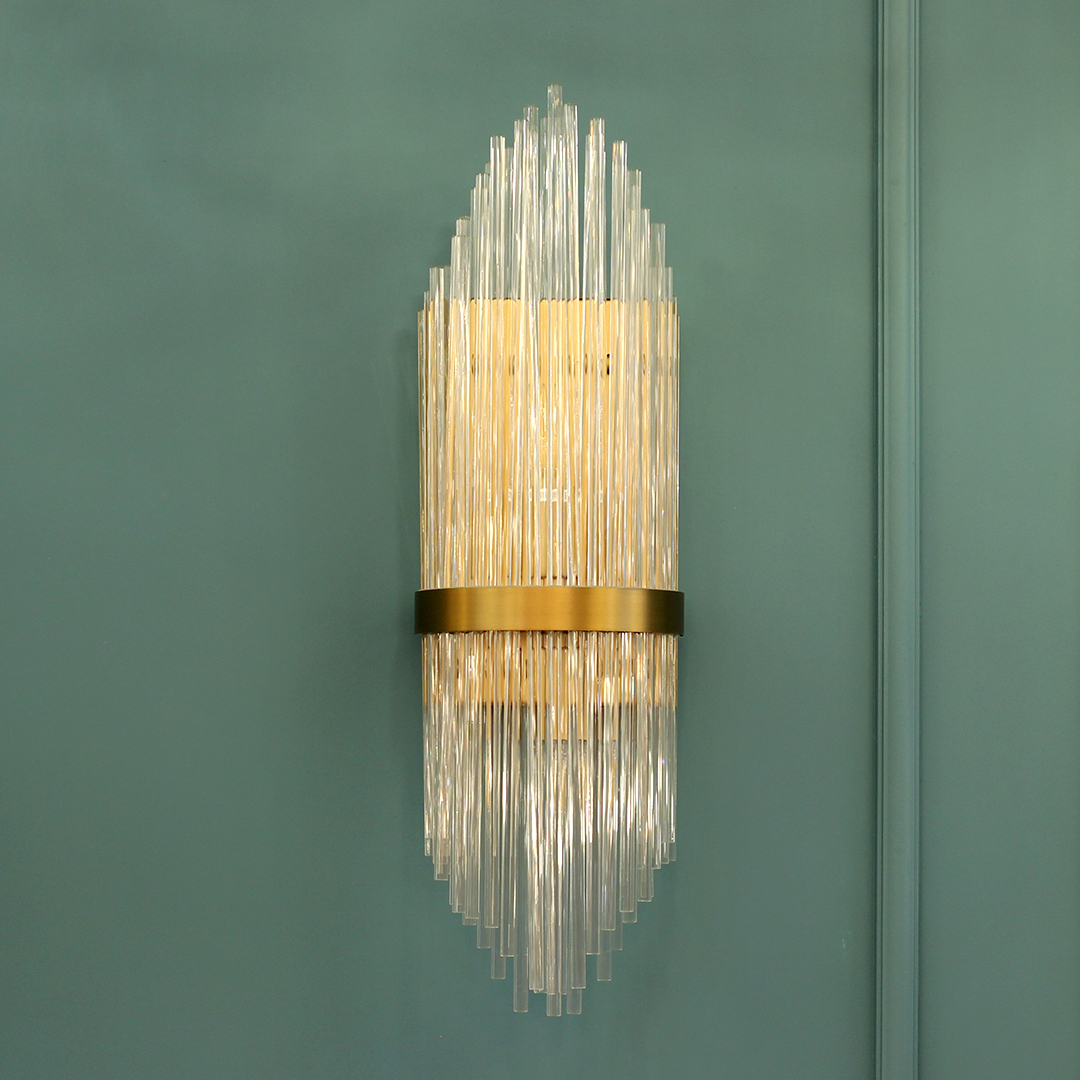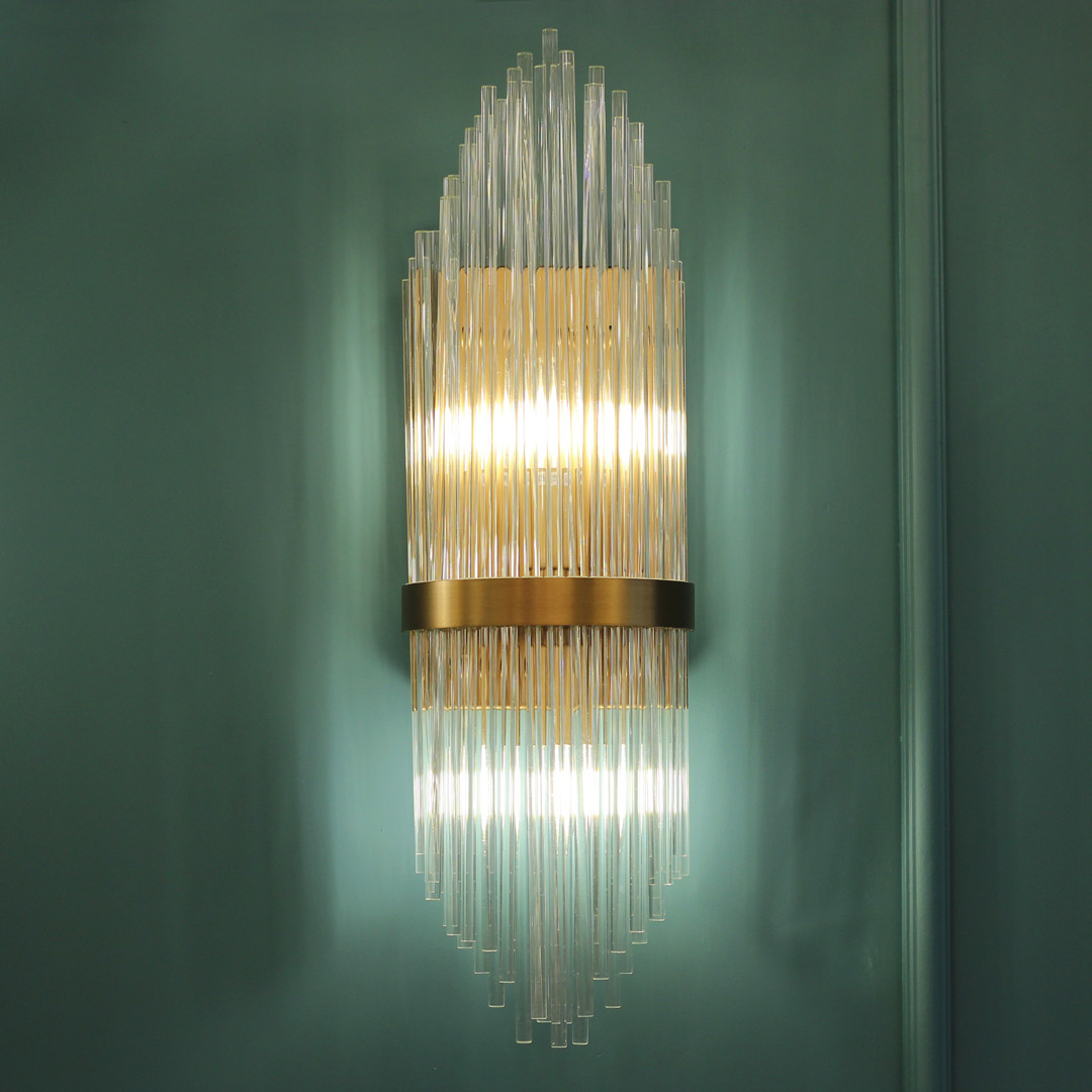 Бра Cloyd CADANCE (Клойд Каданс) W2 / арт.20155, ширина: 18 см. высота: 60 см глубина: 12 см, источник света: E14 х 2 шт, цвет металла - латунь брашированная. Гарантия: 1 год.