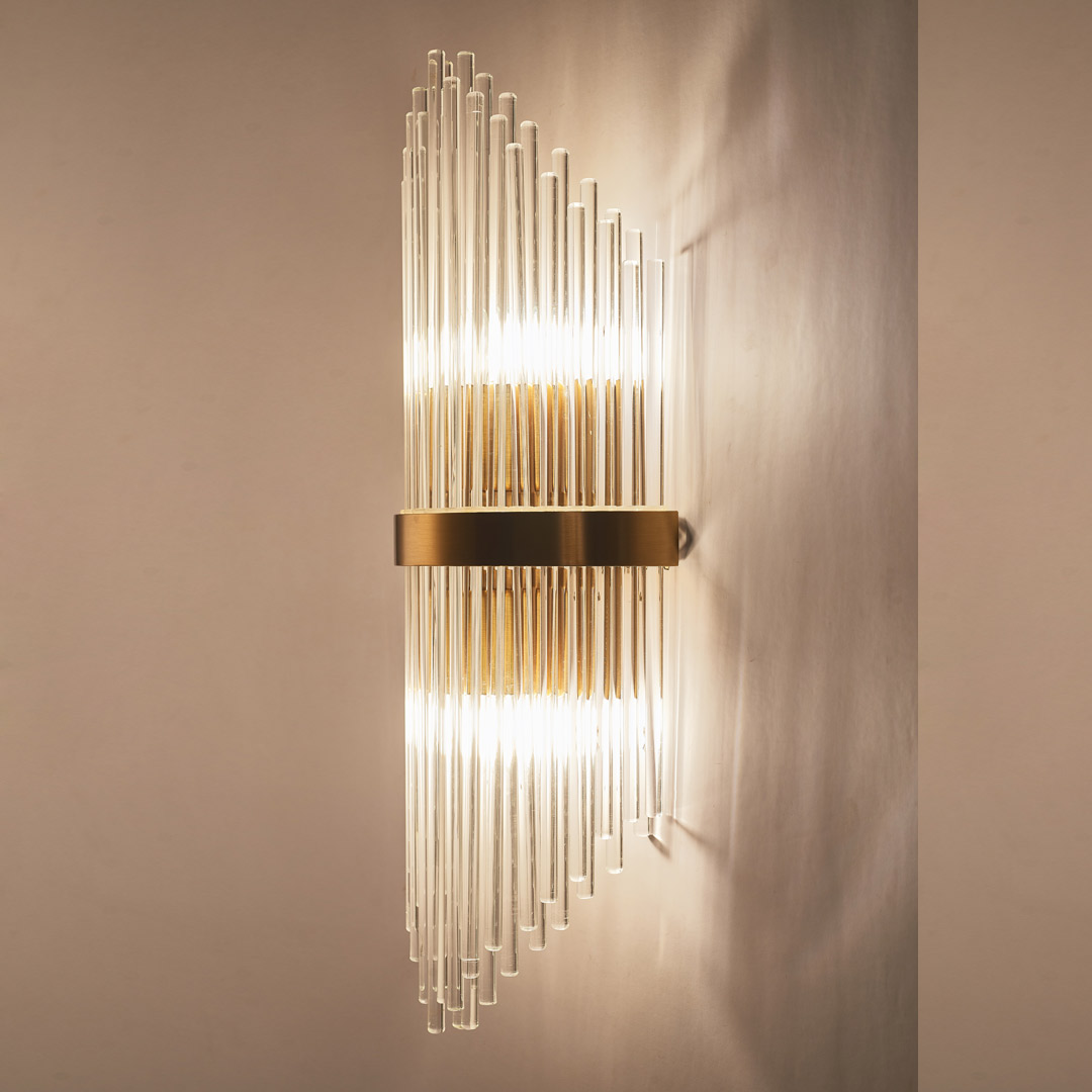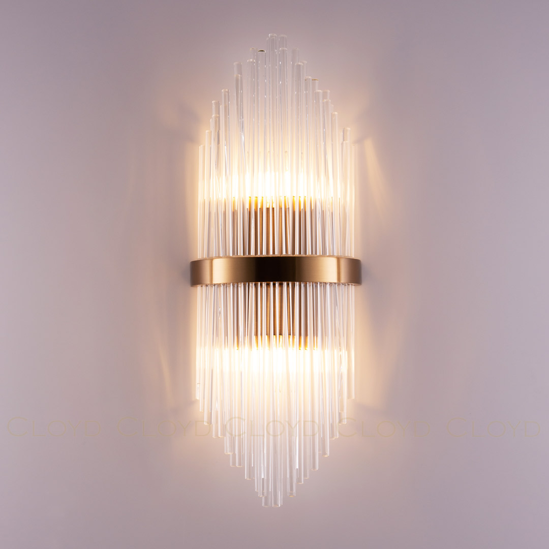 Бра Cloyd CADANCE (Клойд Каданс) W2 / арт.20473, ширина: 18 см. высота: 54 см глубина: 12 см, источник света: E14 х 2 шт, цвет металла - латунь. Гарантия: 1 год.