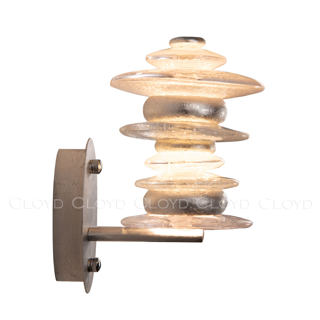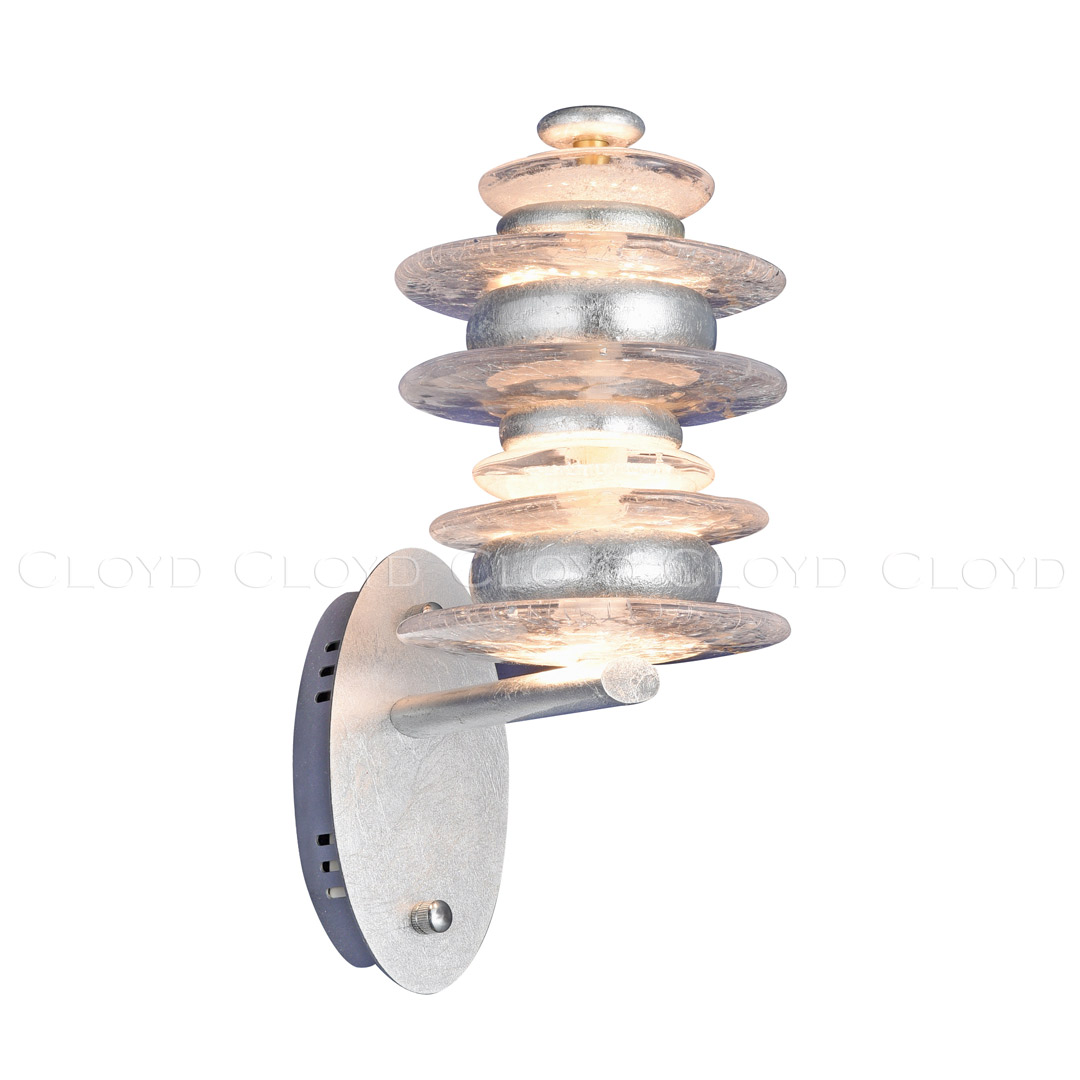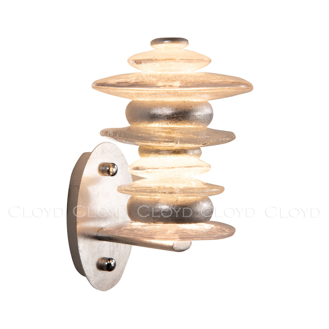 Бра Cloyd GEFEST (Клойд Гефест) W3 / арт.20125, ширина: 15 см. высота: 25 см глубина: 20 см, источник света: LED 15 Вт (3000 К, теплый свет), цвет металла - серебро сусальное. Гарантия: 1 год.