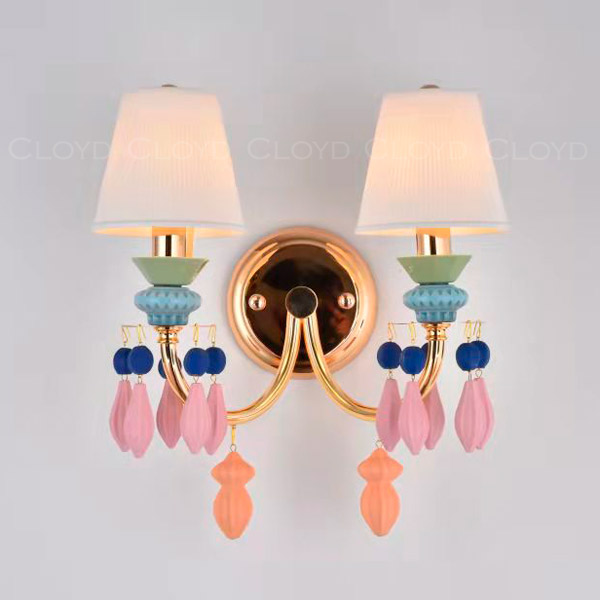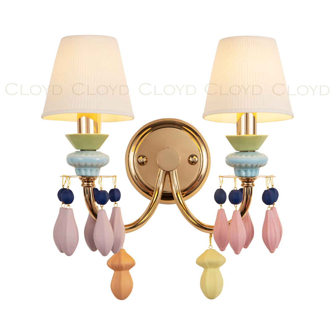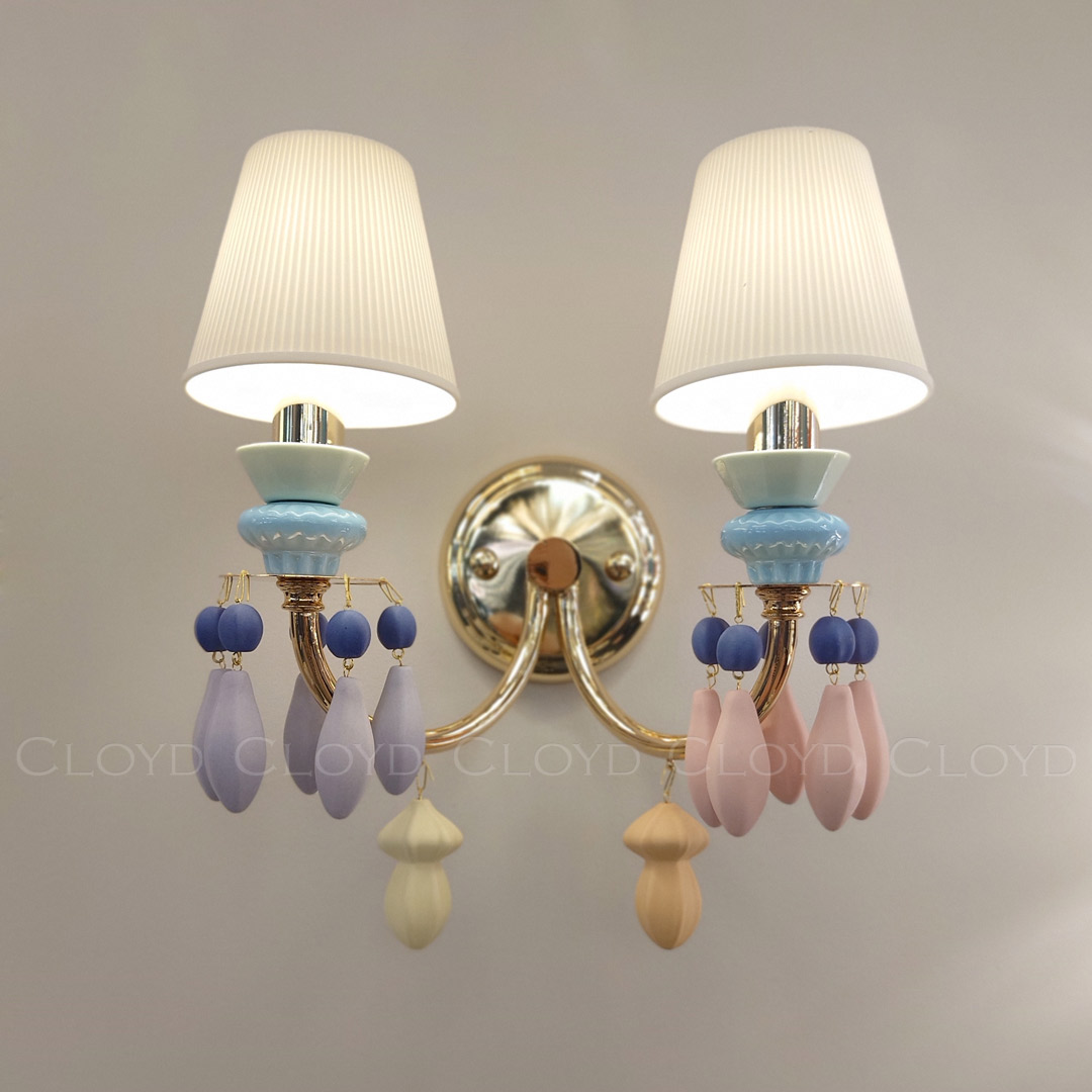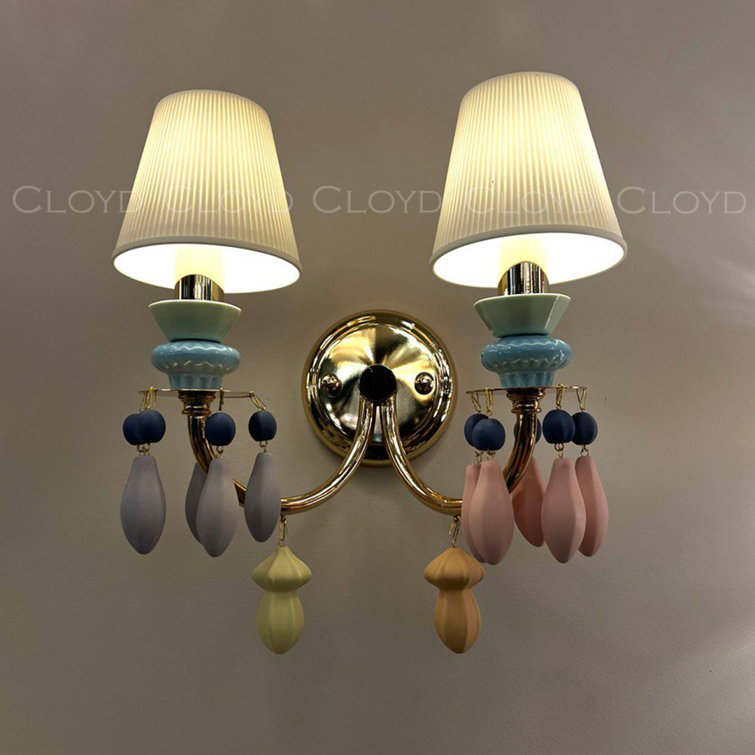 Бра Cloyd LOTTIE (Клойд Лотти) W2 / арт.20291, ширина: 31 см. высота: 35 см глубина: 19 см, источник света: E14 х 2 шт, цвет металла - золото блестящее. Особенности: керамика высокого качества, керамические абажуры.Гарантия: 1 год.