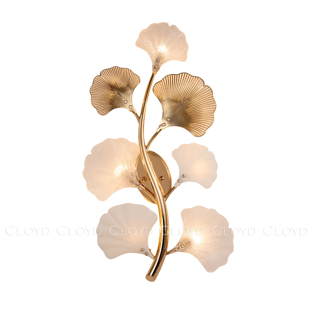 Бра Cloyd POLYNESIA (Клойд Полинезия) W7 / арт.20112, ширина: 50 см. высота: 77 см глубина: 9 см, источник света: G9 х 7 шт, цвет металла - золото блестящее. Особенности: керамика высокого качества.Гарантия: 1 год.