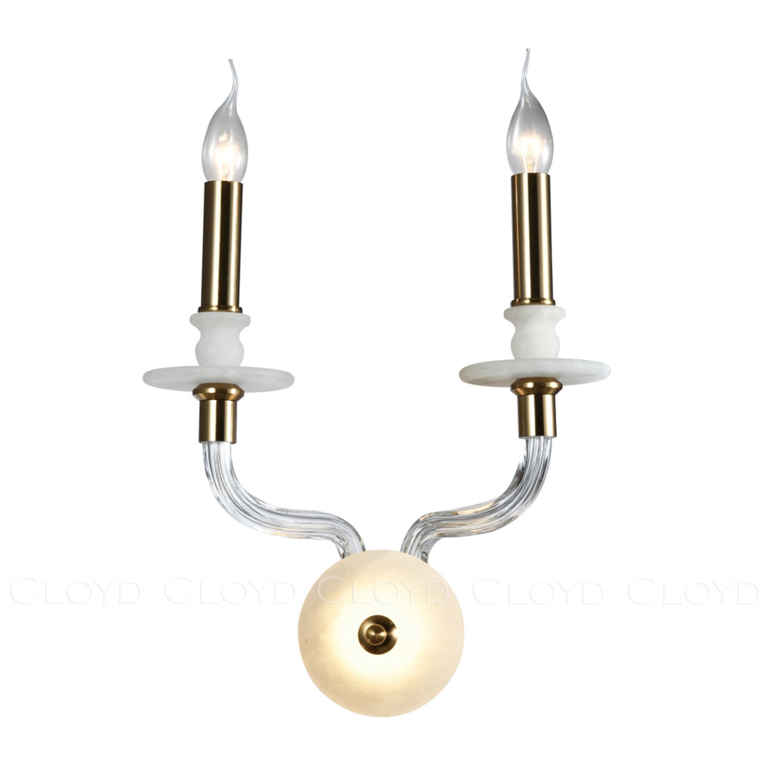Бра Cloyd SHERINGTON (Клойд Шерингтон) W3 / арт.20362, ширина: 35 см. высота: 45 см глубина: 23 см, источник света: E14 х 2 шт + LED 10 Вт, цвет металла - латунь. Особенности: алебастр или Облачный Камень - минерал с повышенной светопроницаемостью.Гарантия: 1 год.
