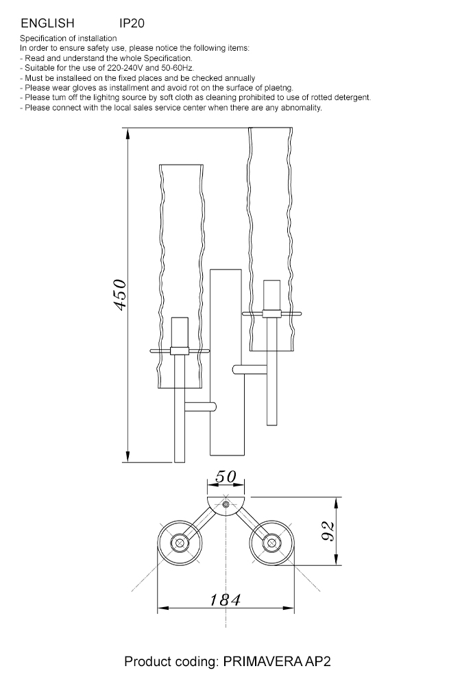 Бра Crystal Lux PRIMAVERA AP2 GOLD