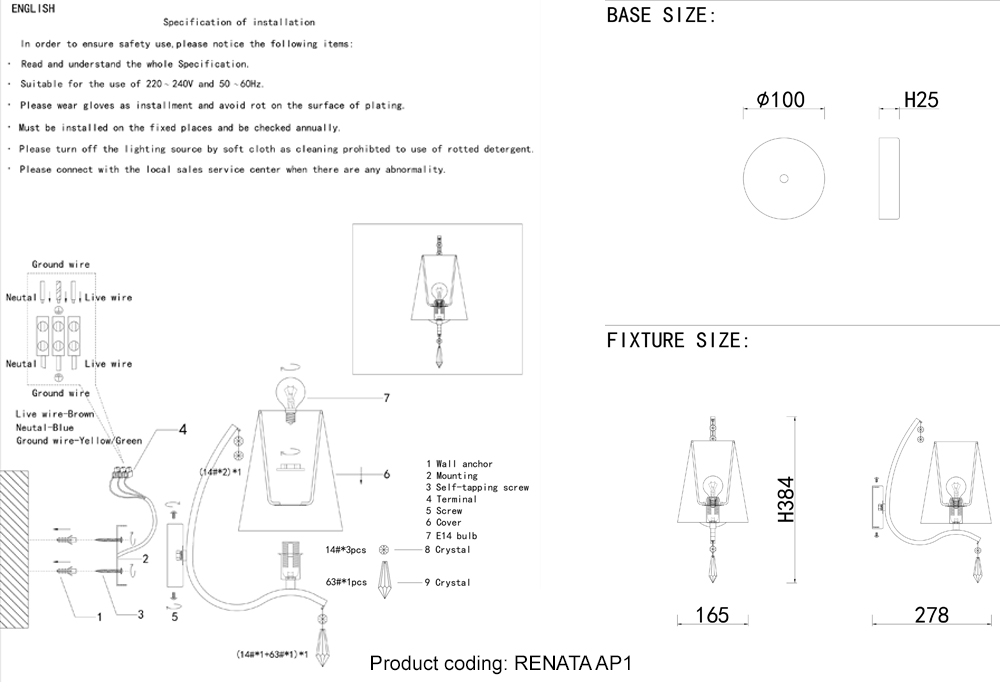 Бра Crystal Lux RENATA AP1 GOLD