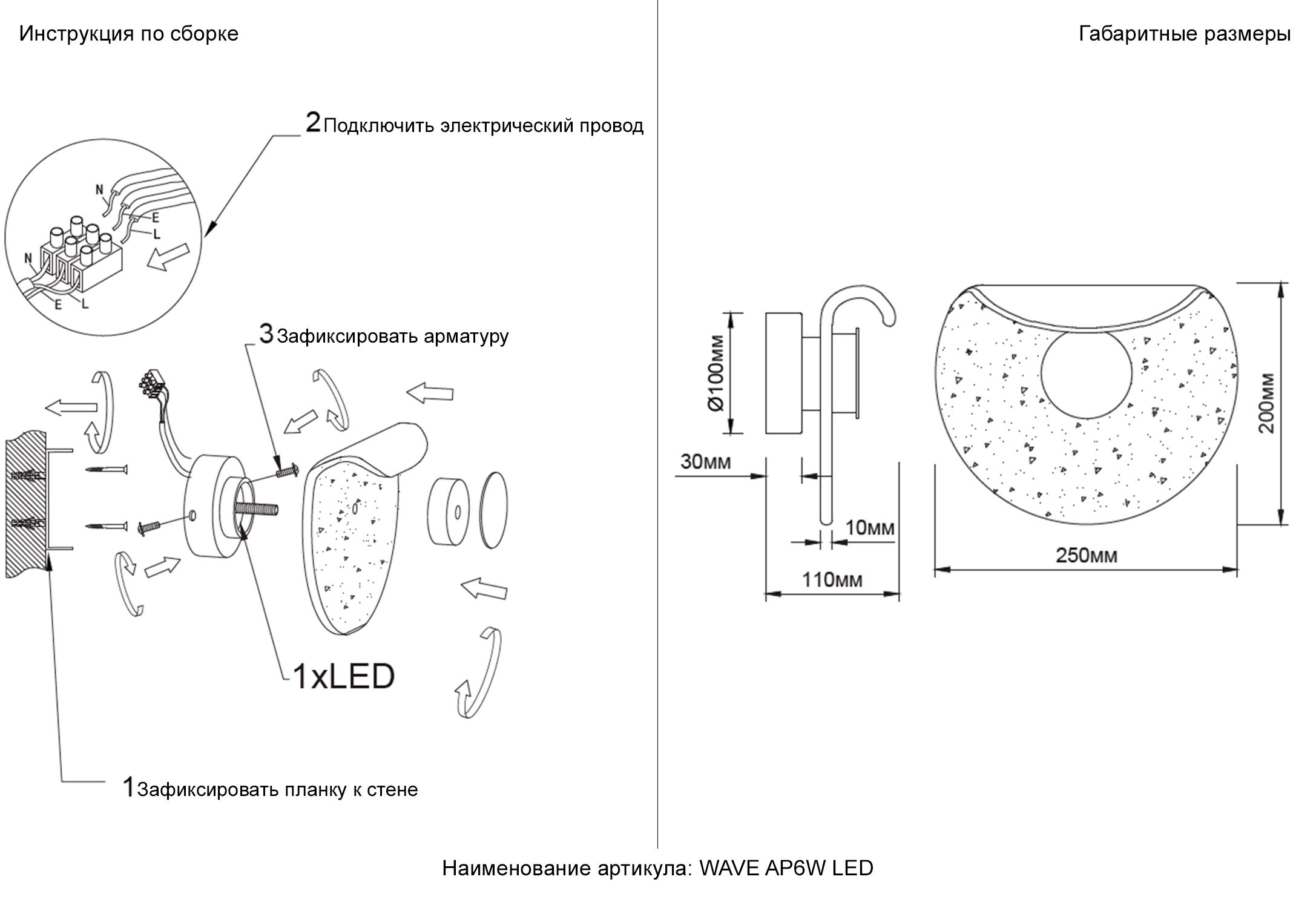 Бра Crystal Lux WAVE AP6W LED TRANSPARENT