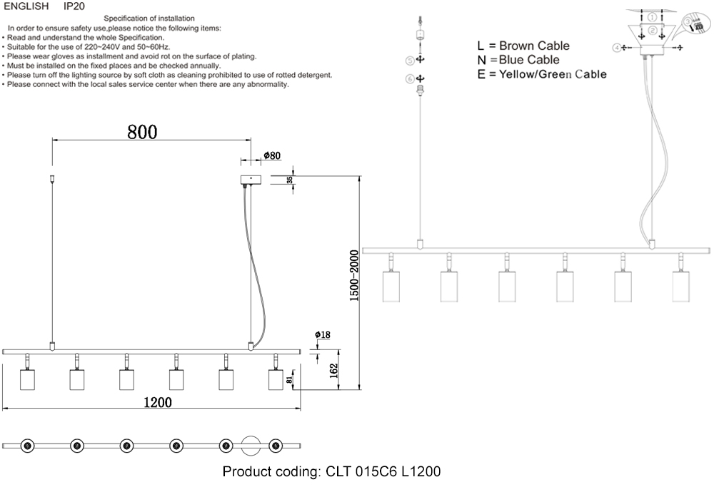 Высота с цепью/тросом, мм