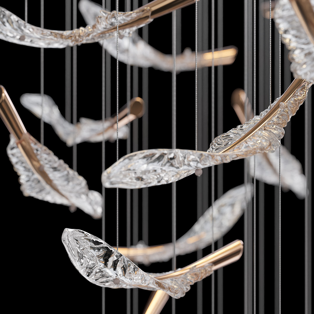 Декоративная композиция Cloyd AERIA 1686 (Клойд Аэрия) S60 / арт.60002, ø: 80 см. высота: 200 см. Без потолочной чаши. Композиция включает в себя: 60 стеклянных элементов (цвет стекла - прозрачный и золото), потолочные крепежи, трос, фиксаторы для стекол и сопроводительную документацию для монтажа.Рекомендуемое количество источников света — 9 шт (не включены в стоимость). Возможны любые изменения размеров и форм под ваш проект.