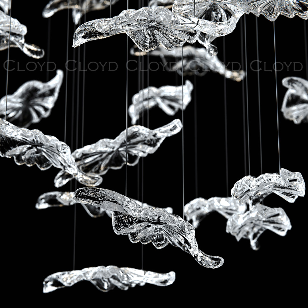 Декоративная композиция Cloyd AERIA 1688 (Клойд Аэрия) S60 / арт.60005, ø: 60 см. высота: 150 см. Без потолочной чаши. Композиция включает в себя: 60 стеклянных элементов (цвет стекла - прозрачный), потолочные крепежи, трос, фиксаторы для стекол и сопроводительную документацию для монтажа.Рекомендуемое количество источников света — 6 шт (не включены в стоимость). Возможны любые изменения размеров и форм под ваш проект.
