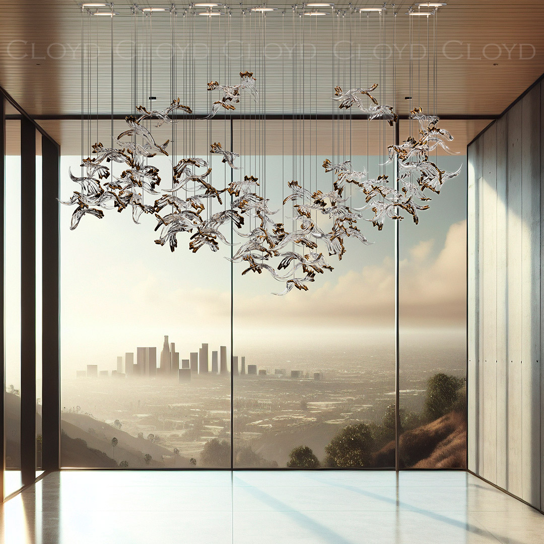 Декоративная композиция Cloyd AERIA 1703 (Клойд Аэрия) S80 / арт.60003, ширина: 120 см. высота: 100 см глубина: 80 см. Без потолочной чаши. Композиция включает в себя: 80 стеклянных элементов (цвет стекла - прозрачный и золото), потолочные крепежи, трос, фиксаторы для стекол и сопроводительную документацию для монтажа.Рекомендуемое количество источников света — 11 шт (не включены в стоимость). Возможны любые изменения размеров и форм под ваш проект.