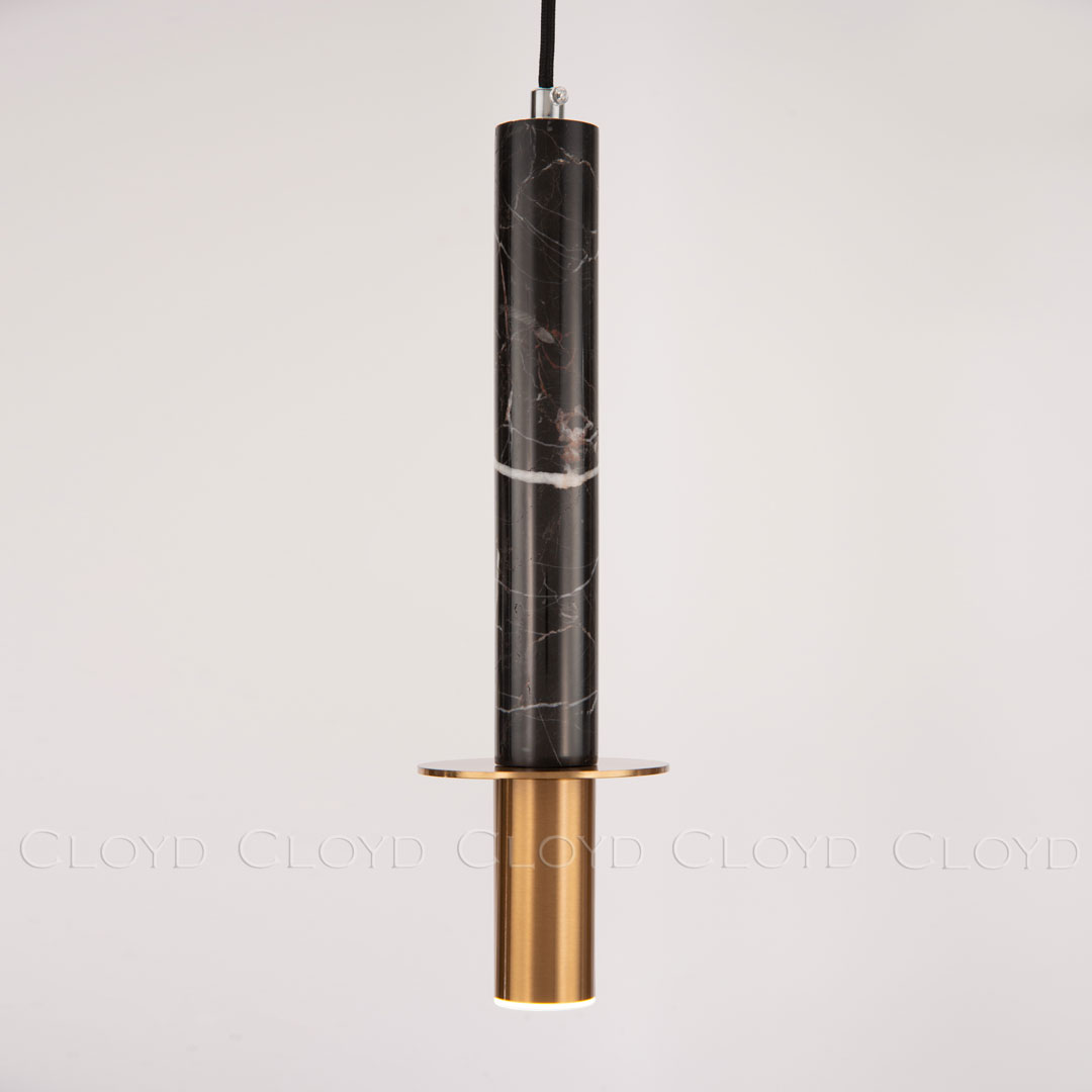 Подвесной светильник Cloyd CLARNET (Клойд Кларнет) P1 / арт.10797, ø: 10 см. высота: 36 см (подвес в комплекте - до 150 см), источник света: GU10 х 1 шт, цвет металла - латунь. Особенности: натуральный мрамор.Гарантия: 1 год.