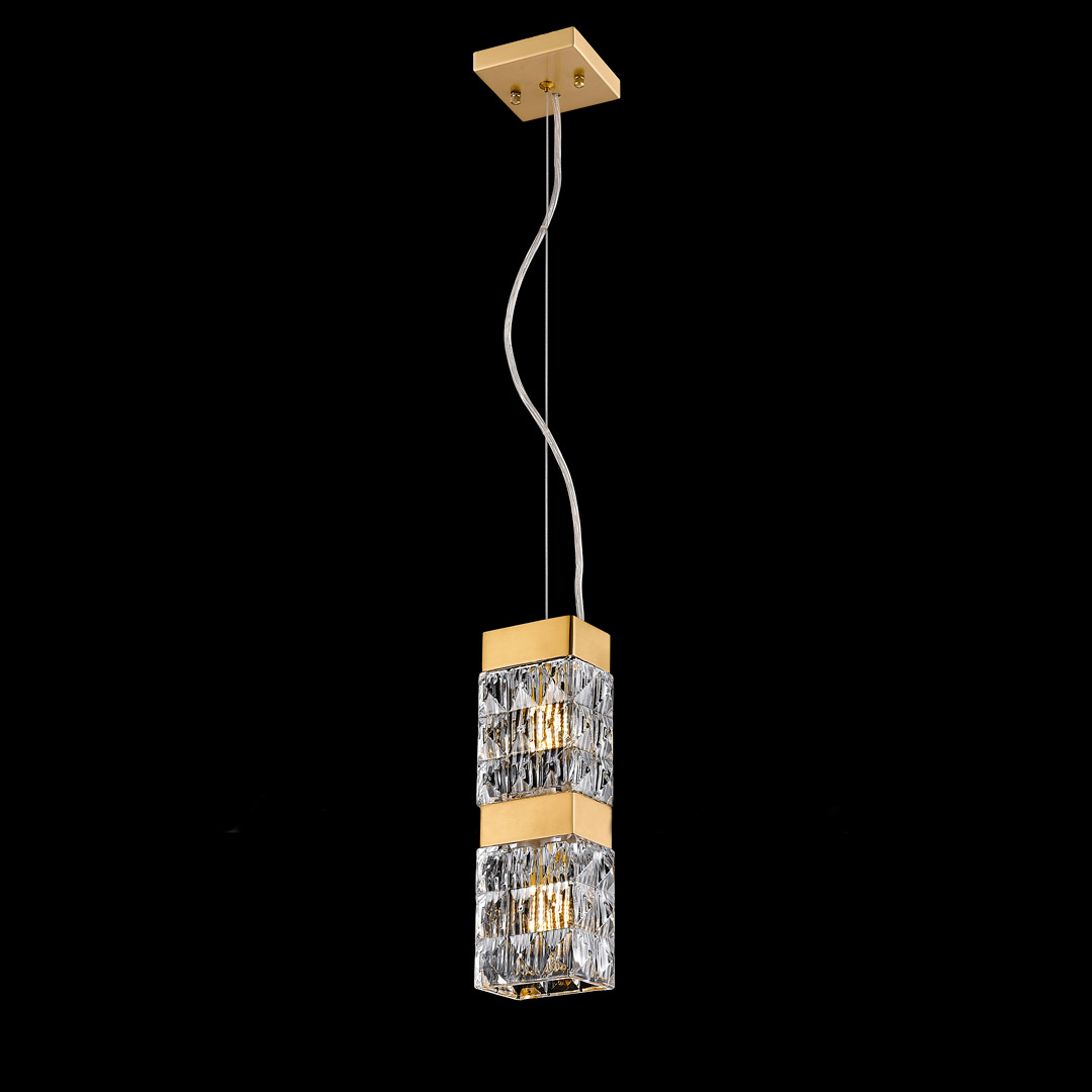 Подвесной светильник Cloyd CORUND (Клойд Корунд) P2 / арт.10682, ширина: 11 см. высота: 30 см глубина: 8 см, источник света: G9 х 2 шт, цвет металла - латунь. Гарантия: 1 год.
