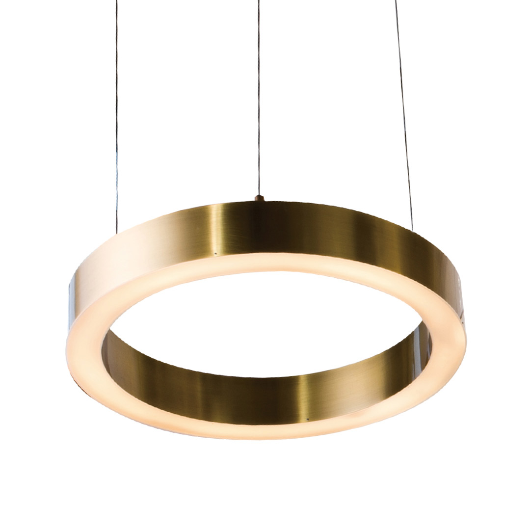 Подвесной светильник Cloyd RAUNDS (Клойд Раундс) P1 / арт.10251, ø: 55 см. высота: 6 см (подвес в комплекте - до 50 см), источник света: LED 55 Вт (3000 К, теплый свет), цвет металла - латунь. Гарантия: 1 год.