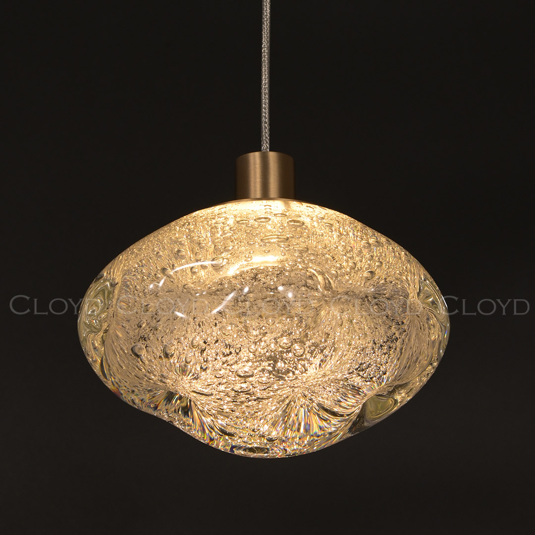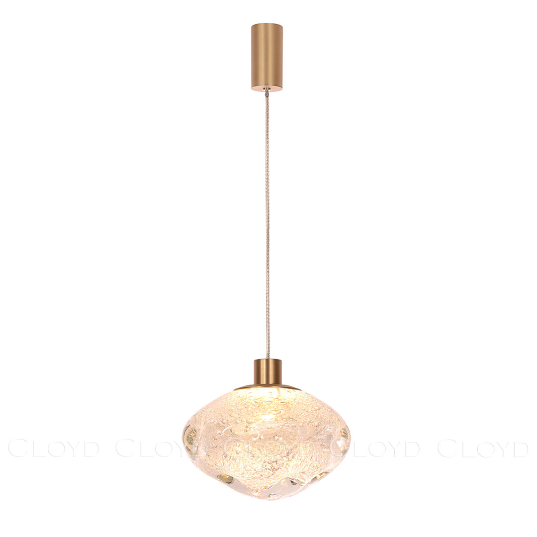 Подвесной светильник Cloyd VOCAL (Клойд Вокал) P1 / арт.11345, ø: 15 см. высота: 13 см (подвес в комплекте - до 190 см), источник света: LED 6 Вт (3000 К, теплый свет), цвет металла - латунь. Стеклянные элементы этих светильников изготовлены вручную и могут отличаться по форме и оттенку стекла от партиии к партии. Гарантия: 1 год.