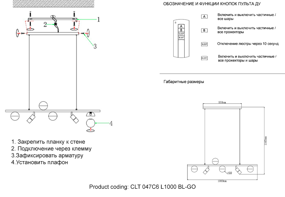 Светильник подвесной Crystal Lux CLT 047C6 L1000 BL-GO