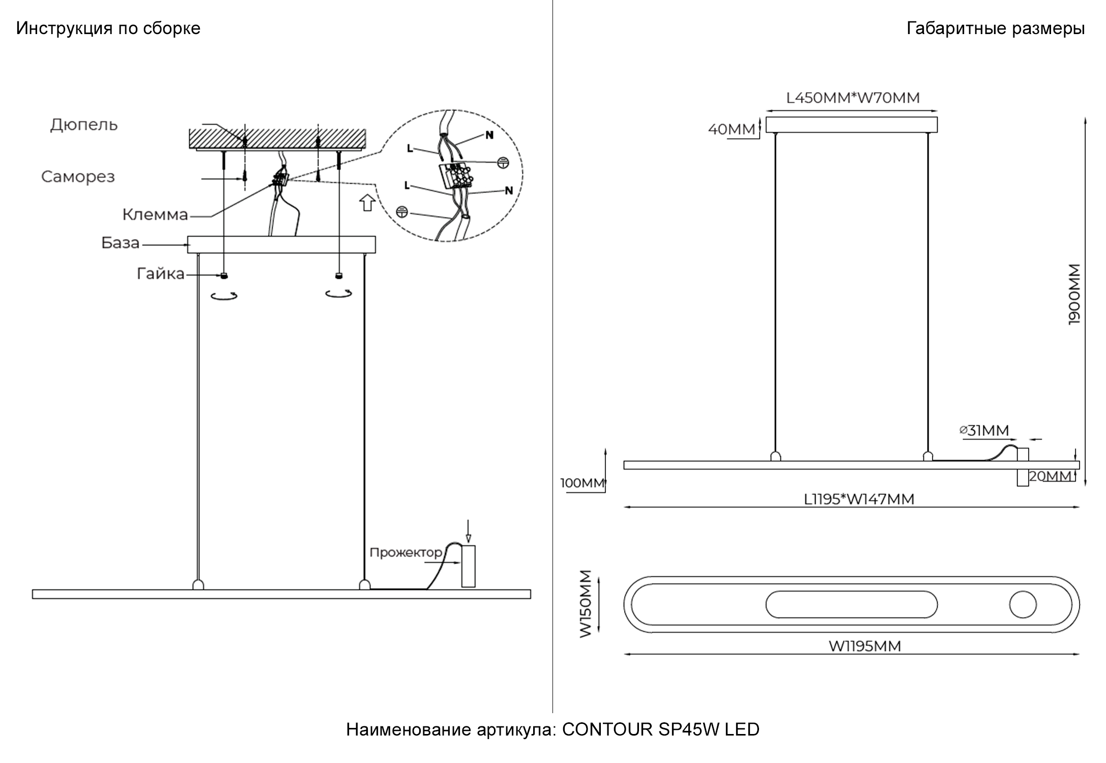 Светильник подвесной Crystal Lux CONTOUR SP45W LED BLACK