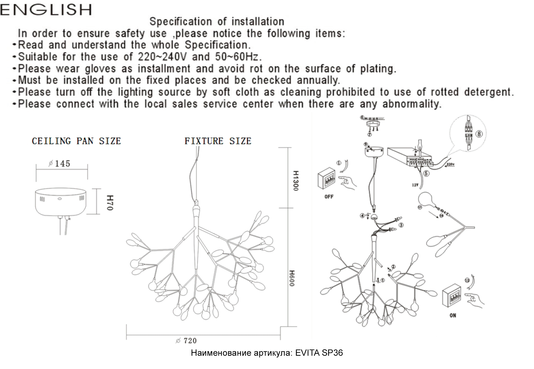 Светильник подвесной Crystal Lux EVITA SP36 BLACK/TRANSPARENT