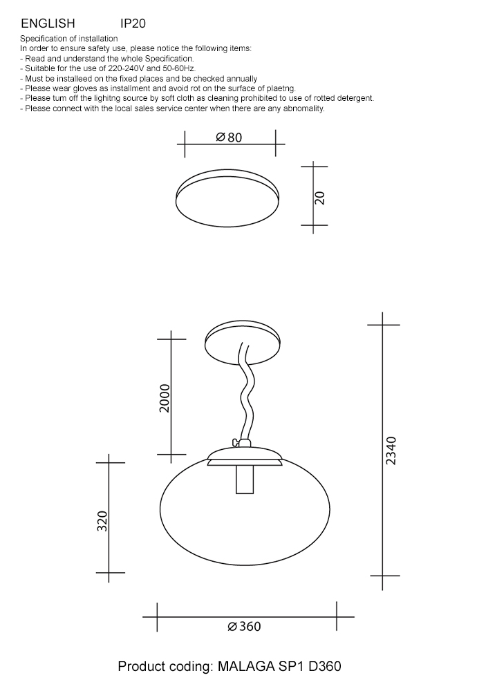 Светильник подвесной Crystal Lux MALAGA SP1 D360 COOPER