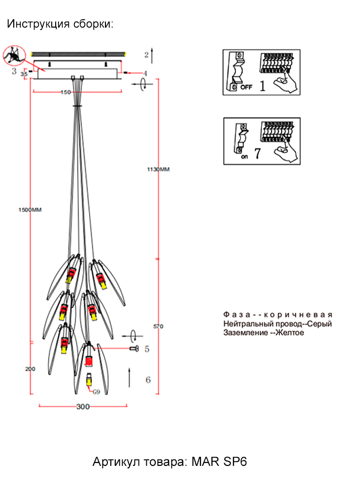 Светильник подвесной Crystal Lux MAR SP6 TRANSPARENTE