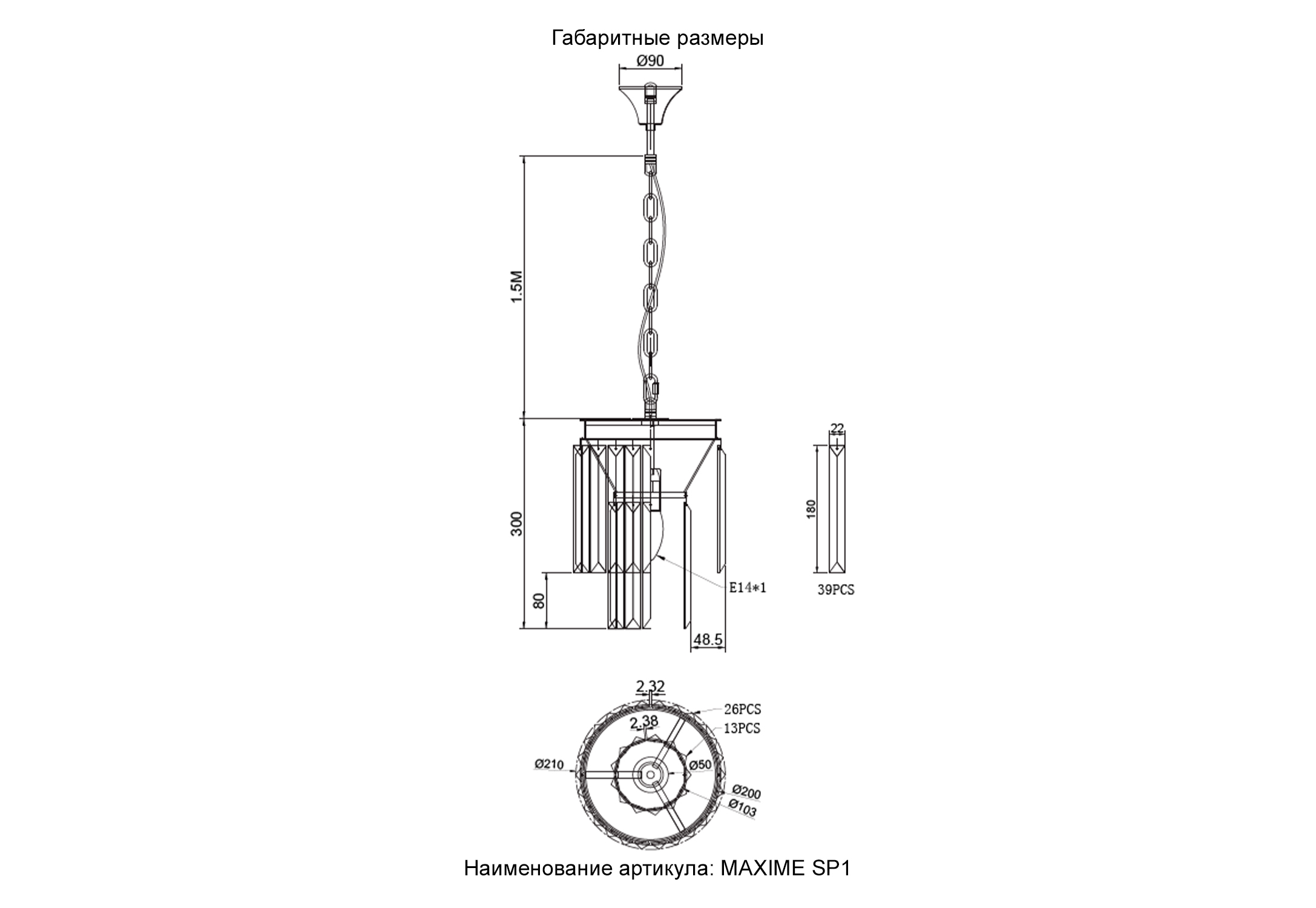 Светильник подвесной Crystal Lux MAXIME SP1 BLACK