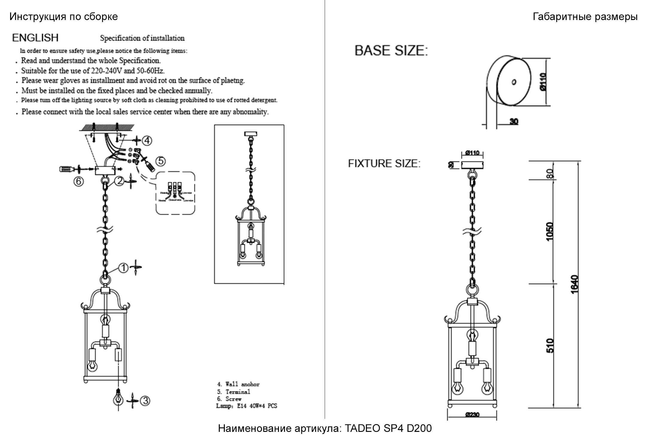 Высота с цепью/тросом, мм