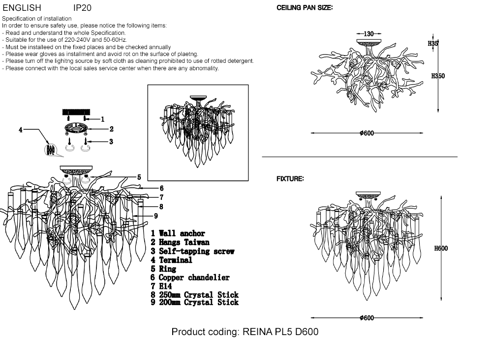 Люстра Crystal Lux REINA PL5 D600 SILVER PATINA