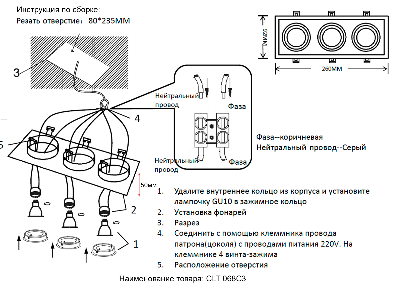 Светильник встроенный Crystal Lux CLT 068C3 BL