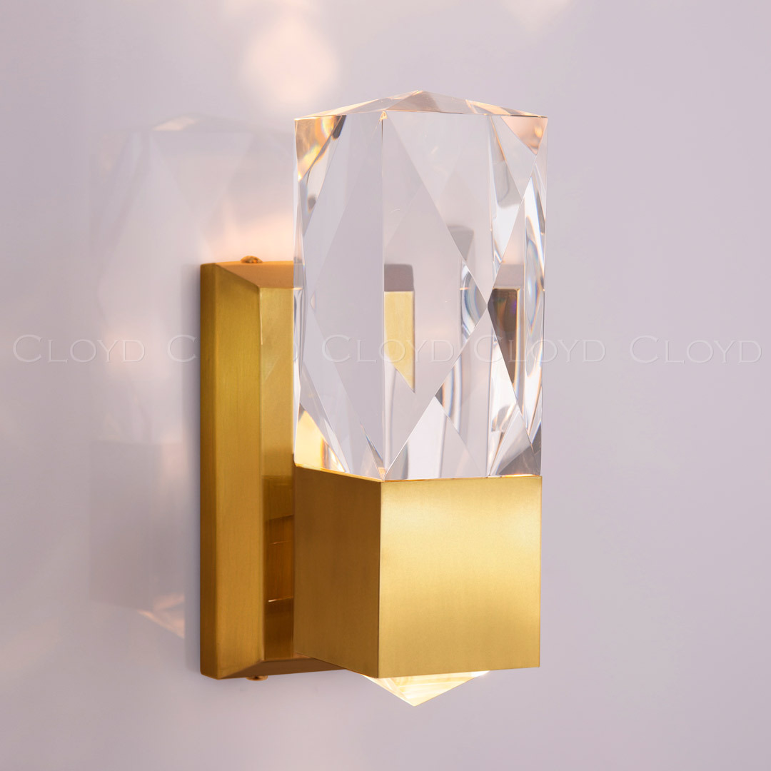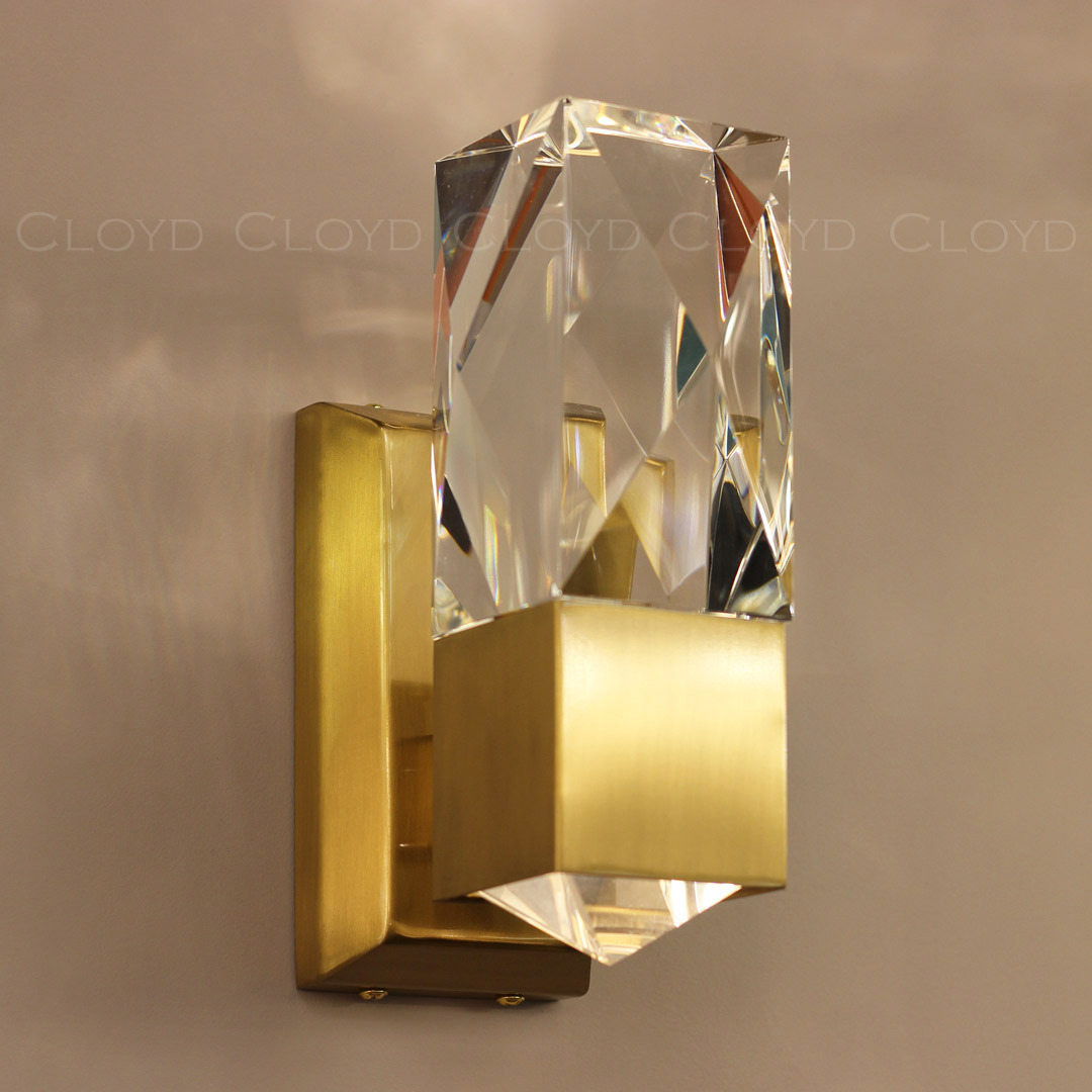 Бра Cloyd CRYO (Клойд Крио) W1 / арт.20170, ширина: 9 см. высота: 22 см глубина: 13 см, источник света: G9 х 1 шт, цвет металла - латунь. Особенности: хрусталь К9.Гарантия: 1 год.