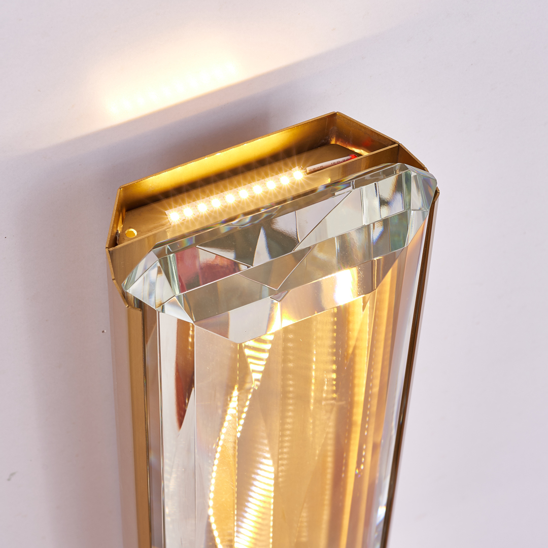 Бра Cloyd TEMPAT (Клойд Темпат) W1 / арт.20169, ширина: 12 см. высота: 40 см глубина: 7 см, источник света: LED 8 Вт, цвет металла - латунь. Особенности: хрусталь К9.Гарантия: 1 год.