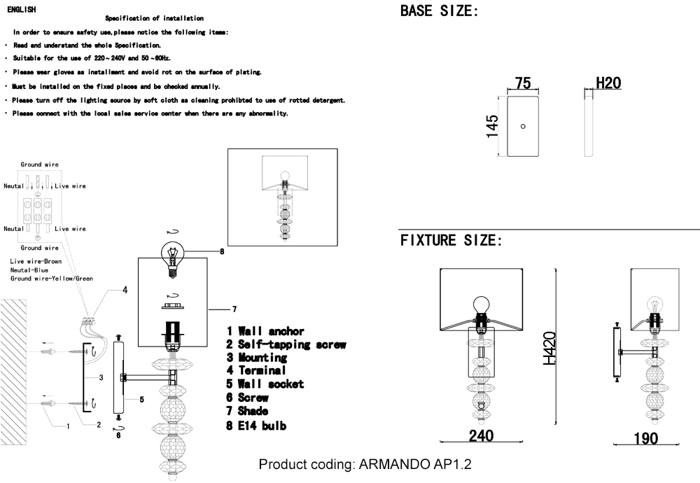 Бра Crystal Lux ARMANDO AP1.2 GOLD