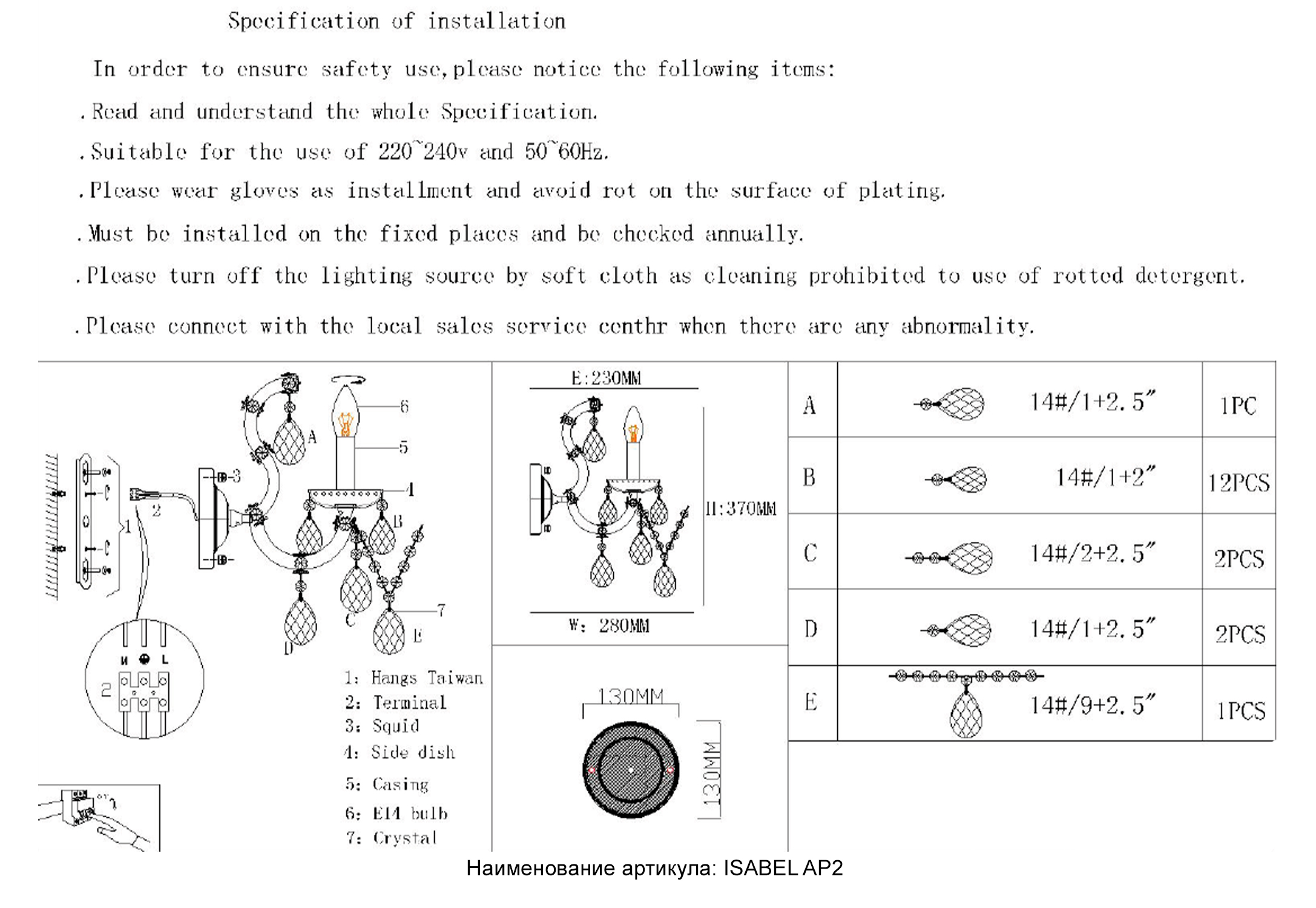 Бра Crystal Lux ISABEL AP2 GOLD/TRANSPARENT