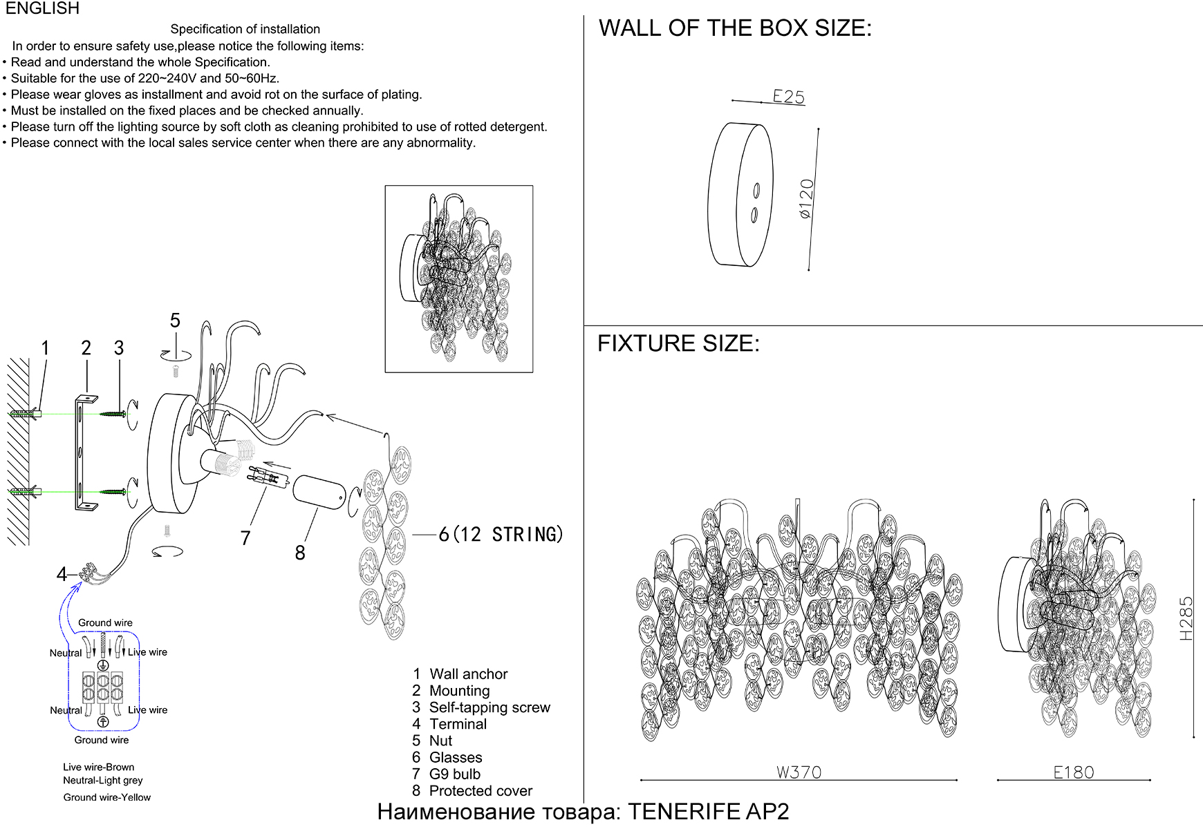 Бра Crystal Lux TENERIFE AP2 SILVER