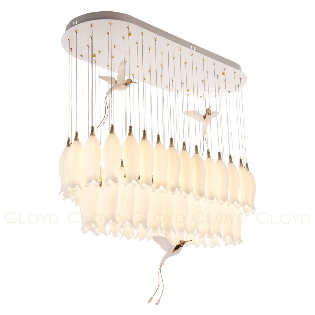 Люстра подвесная Cloyd ARGANA (Клойд Аргана) C54 / арт.11238, ширина: 110 см. высота: 128 см глубина: 40 см, источник света: E14 х 54 шт, цвет металла - белый (окраска). Фурнитура - золото. Особенности: керамика высокого качества.Гарантия: 1 год.