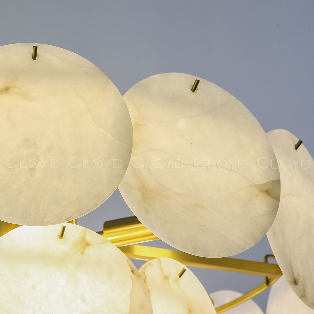 Люстра подвесная Cloyd BOSFOR (Клойд Босфор) C16 / арт.12355, ø: 80 см. высота: 42 см (подвес в комплекте - до 150 см), источник света: E14 х 16 шт, цвет металла - латунь. Особенности: алебастр или Облачный Камень - минерал с повышенной светопроницаемостью.Гарантия: 1 год.