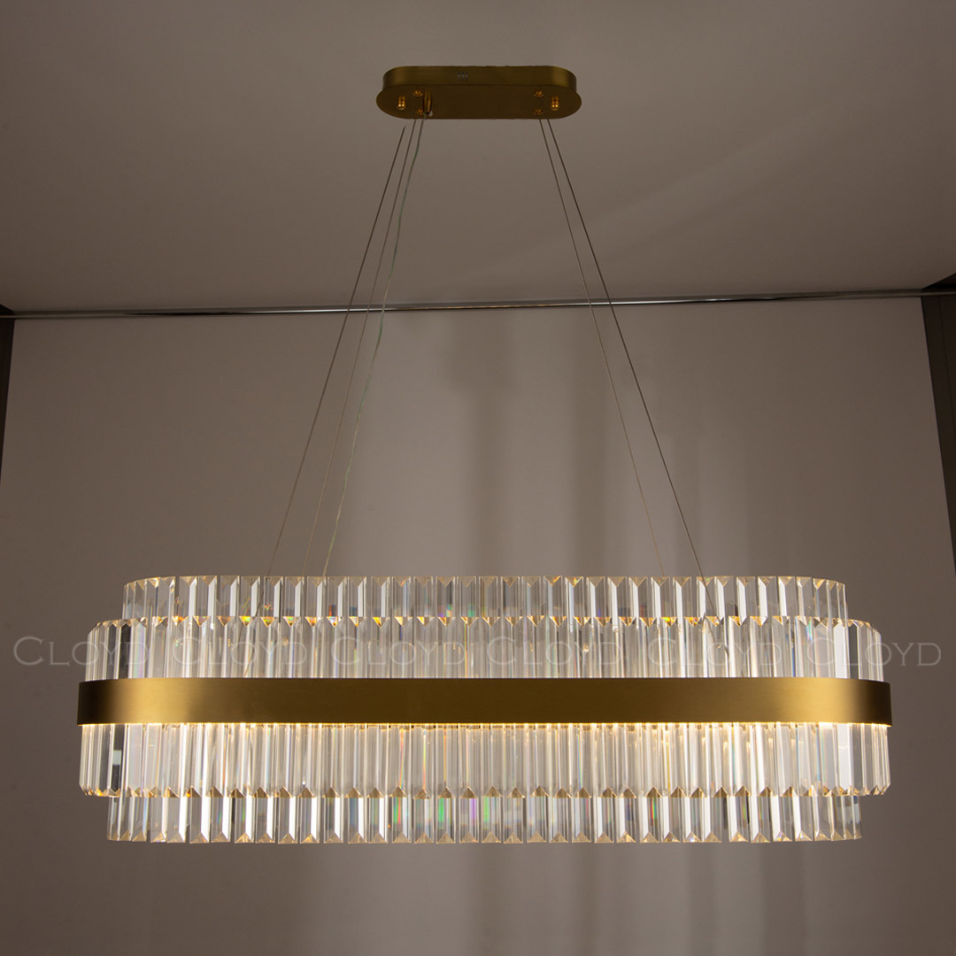 Люстра подвесная Cloyd BROTIGAN (Клойд Бротиган) C1 / арт.10772, ширина: 100 см. высота: 35 см (подвес в комплекте - до 150 см) глубина: 30 см, источник света: LED 90 Вт (3000 К, теплый свет), цвет металла - латунь. Гарантия: 1 год.
