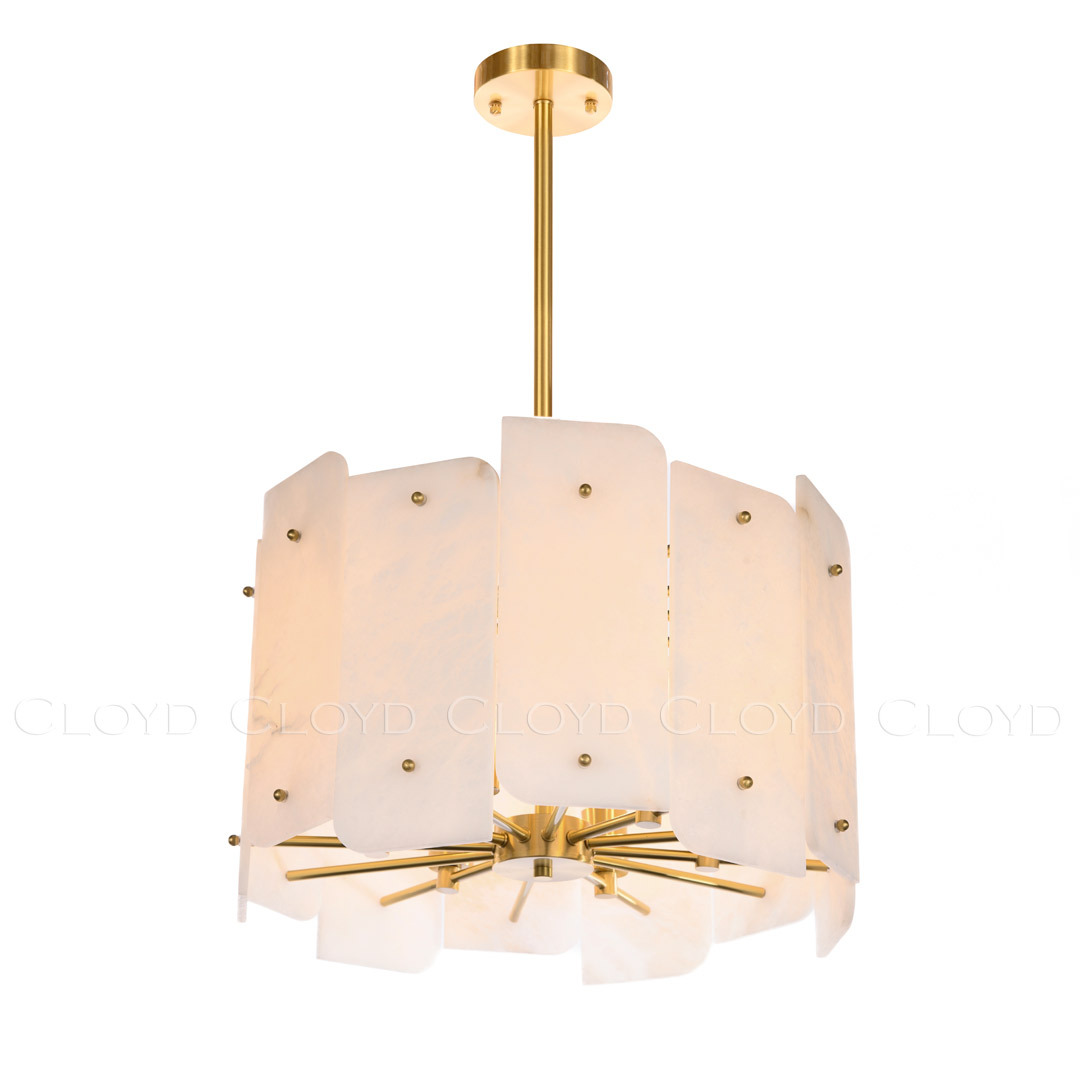 Люстра подвесная Cloyd HERCULANUM (Клойд Геркуланум) C5 / арт.11200, ø: 50 см. высота: 33 см (подвес в комплекте - до 150 см), источник света: E27 х 5 шт, цвет металла - латунь. Особенности: алебастр или Облачный Камень - минерал с повышенной светопроницаемостью.Гарантия: 1 год.