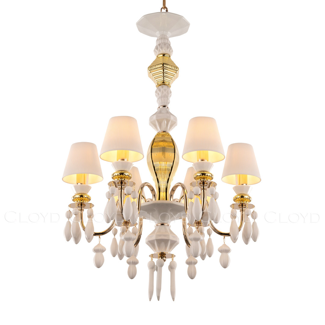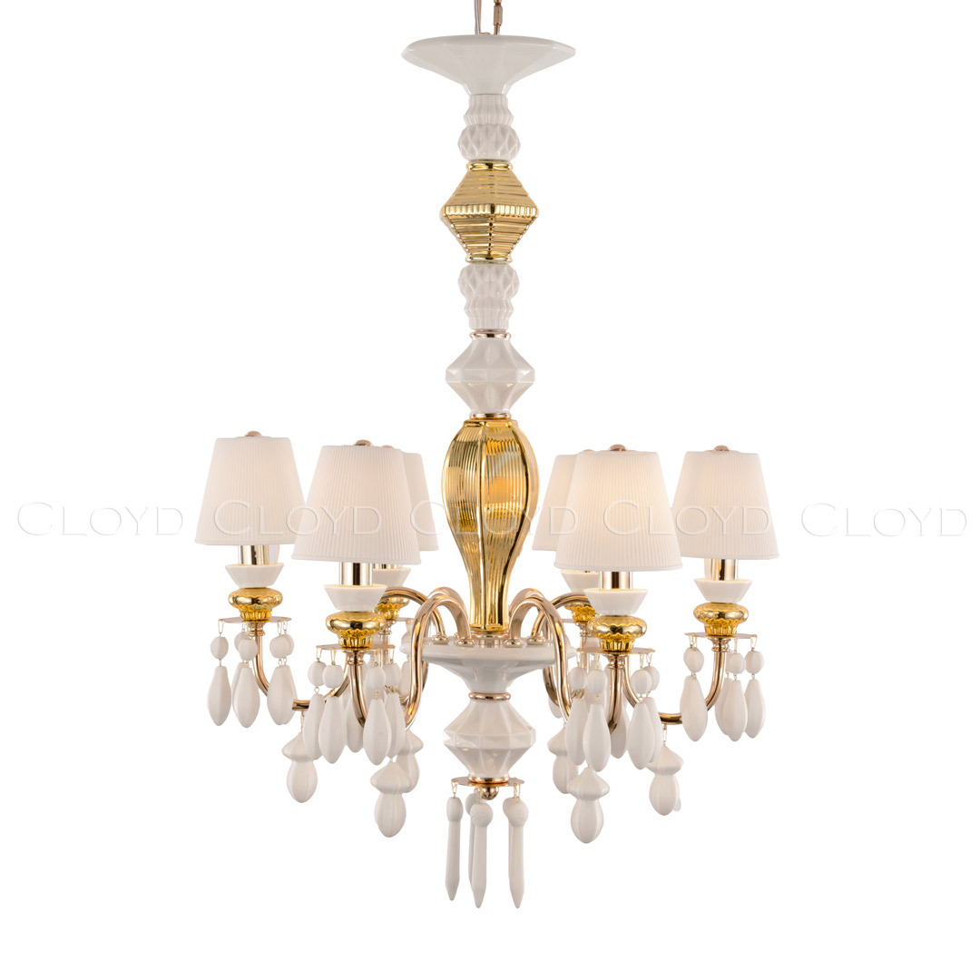 Люстра подвесная Cloyd LOTTIE (Клойд Лотти) C6 / арт.11211, ø: 56 см. высота: 82 см (подвес в комплекте - до 50 см), источник света: E14 х 6 шт, цвет металла - золото блестящее. Особенности: керамика высокого качества, керамические абажуры.Гарантия: 1 год.