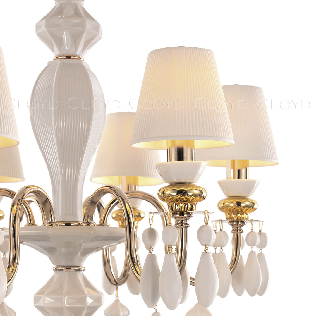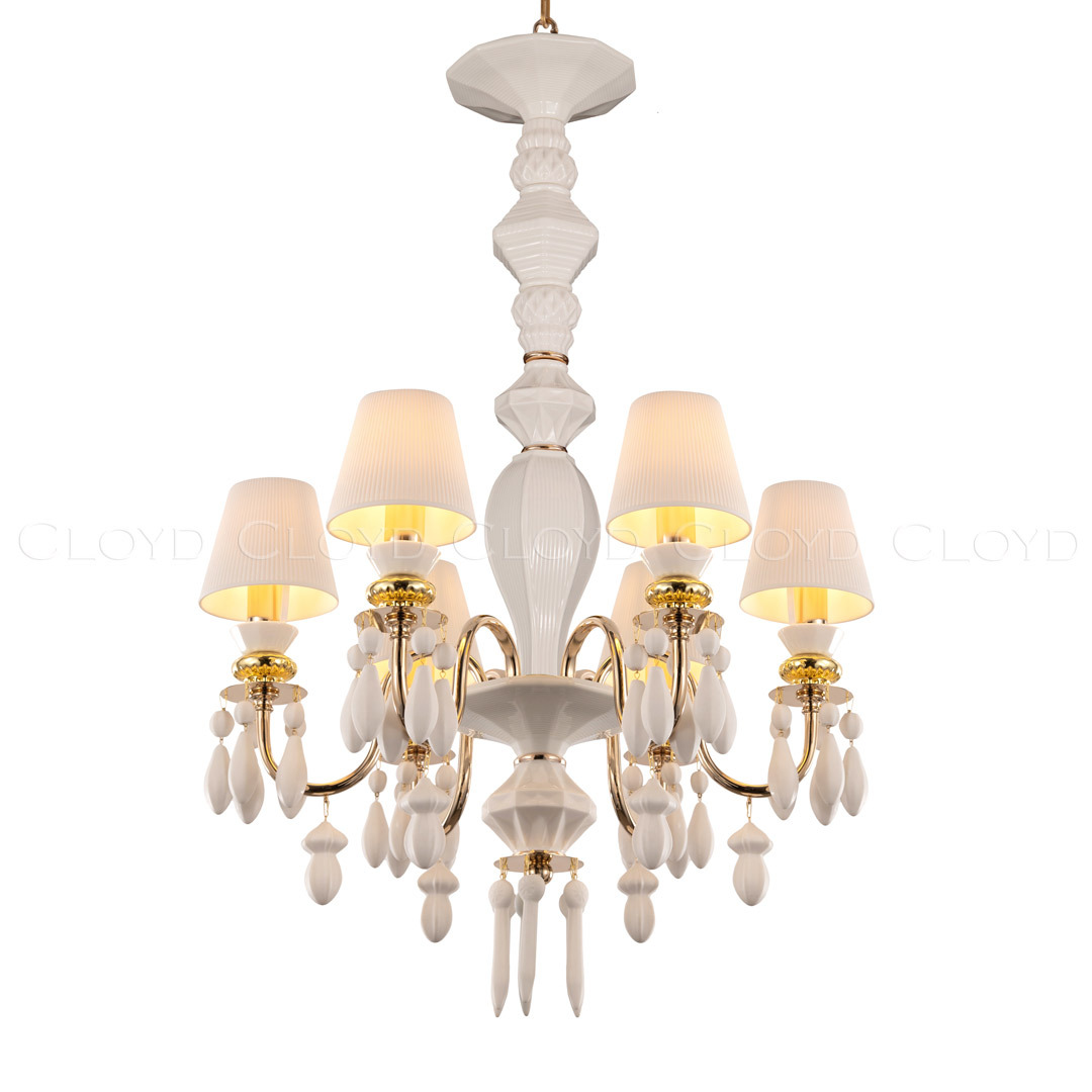 Люстра подвесная Cloyd LOTTIE (Клойд Лотти) C6 / арт.11218, ø: 56 см. высота: 82 см (подвес в комплекте - до 50 см), источник света: E14 х 6 шт, цвет металла - золото блестящее. Особенности: керамика высокого качества, керамические абажуры.Гарантия: 1 год.