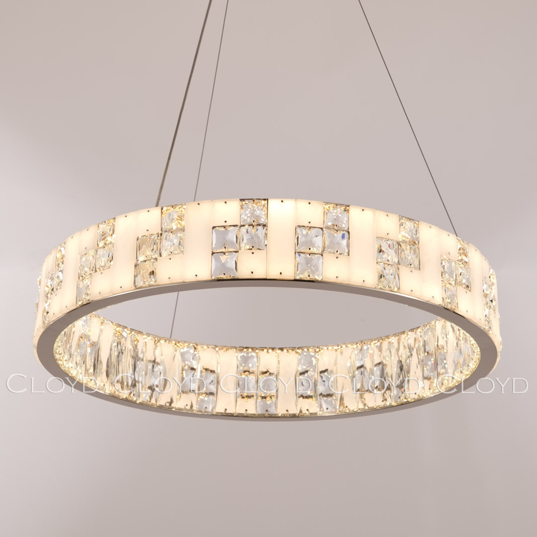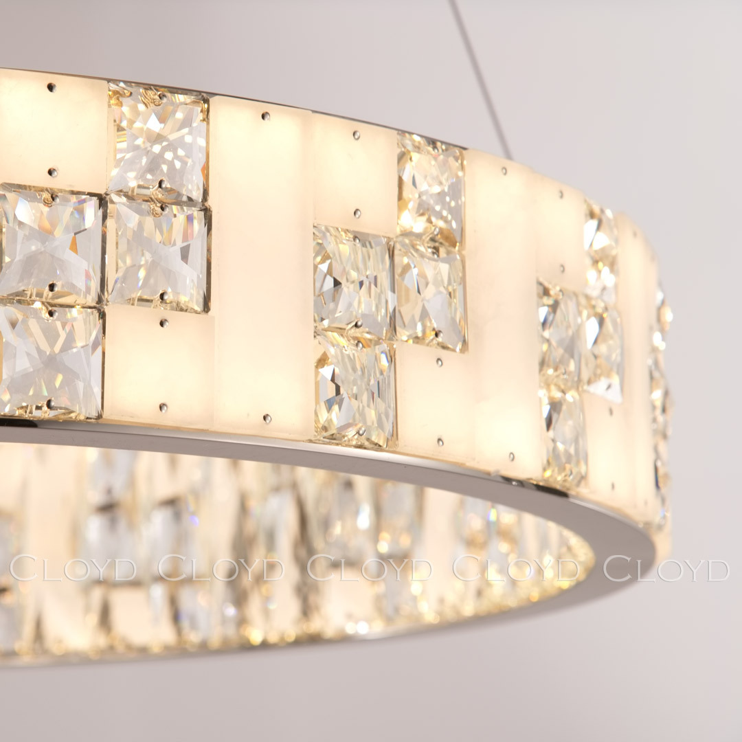 Люстра подвесная Cloyd PERSEFONA (Клойд Персефона) C1 / арт.11226, ø: 60 см. высота: 10 см, источник света: LED 80 Вт (3000 К, теплый свет), цвет металла - никель полированный. Особенности: алебастр или Облачный Камень - минерал с повышенной светопроницаемостью, хрусталь К9.Гарантия: 1 год.
