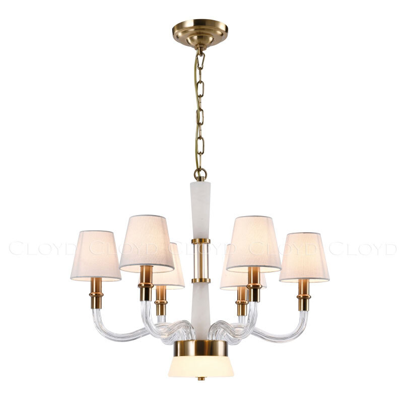 Люстра подвесная Cloyd SHERINGTON (Клойд Шерингтон) C7 / арт.11310, ø: 67 см. высота: 55 см (подвес в комплекте - до 60 см), источник света: E14 х 6 шт + LED 7 Вт, цвет металла - латунь. Особенности: алебастр или Облачный Камень - минерал с повышенной светопроницаемостью.Гарантия: 1 год.