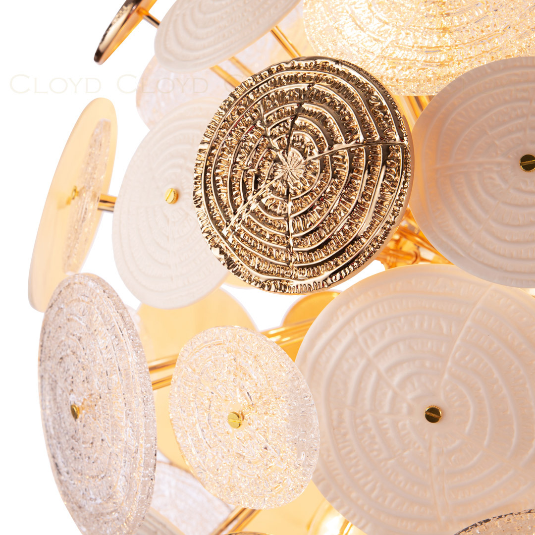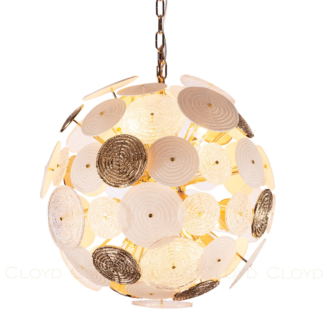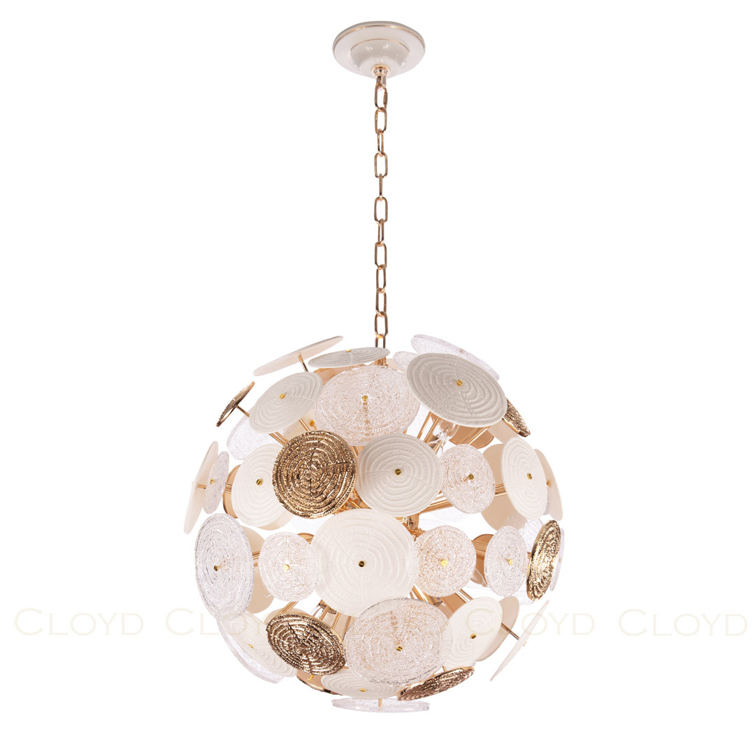 Люстра подвесная Cloyd SOLAR (Клойд Солар) C12 / арт.10660, ø: 50 см. высота: 50 см (подвес в комплекте - до 50 см), источник света: E14 х 12 шт, цвет металла - золото блестящее. Особенности: керамика высокого качества.Гарантия: 1 год.