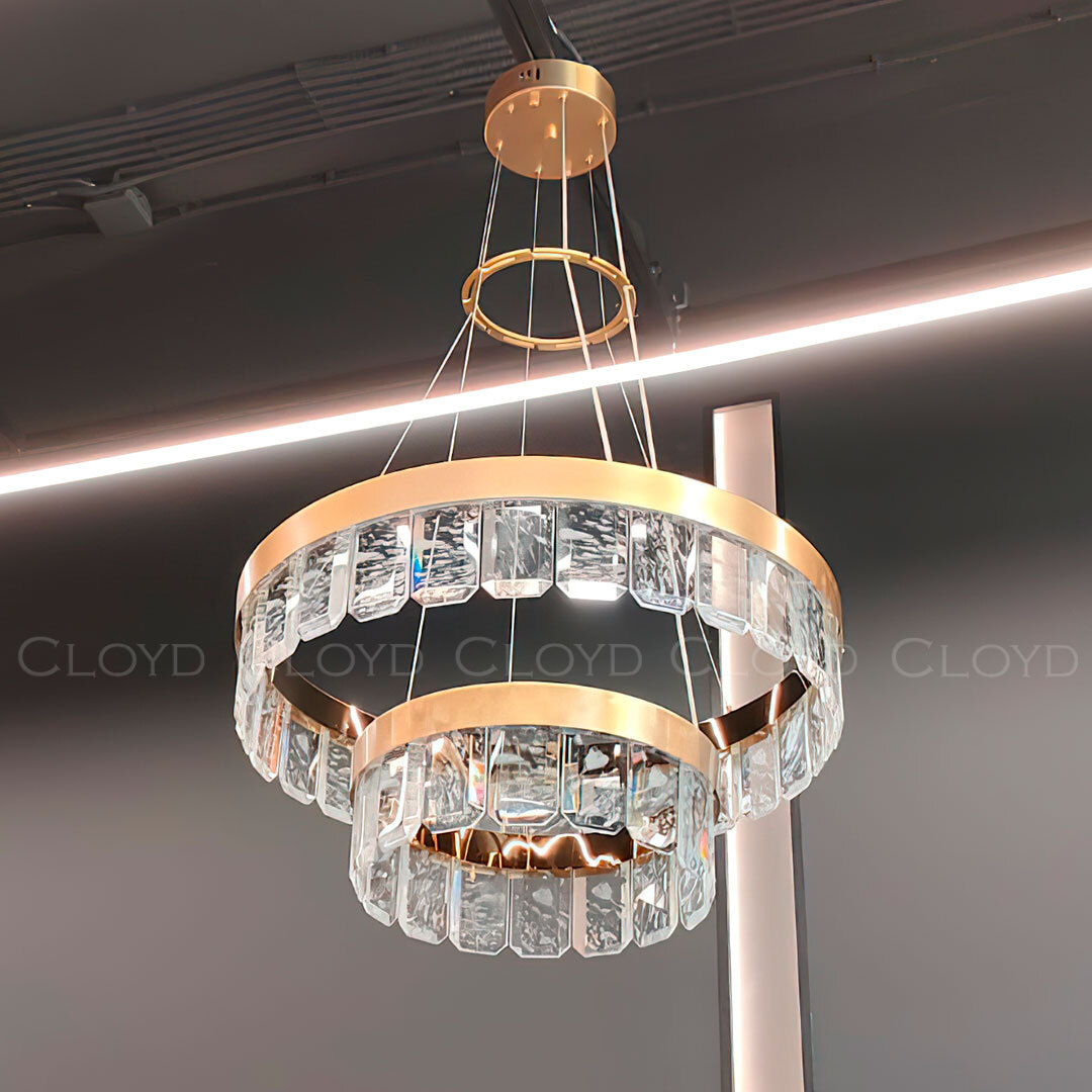 Люстра подвесная Cloyd STRAVINSKY (Клойд Стравинский) C2 / арт.10752, ø: 58 см. высота: 28 см, источник света: LED 64 Вт (3000 К, теплый свет), цвет металла - латунь. Особенности: хрусталь К9, пульт ДУ.Гарантия: 1 год.