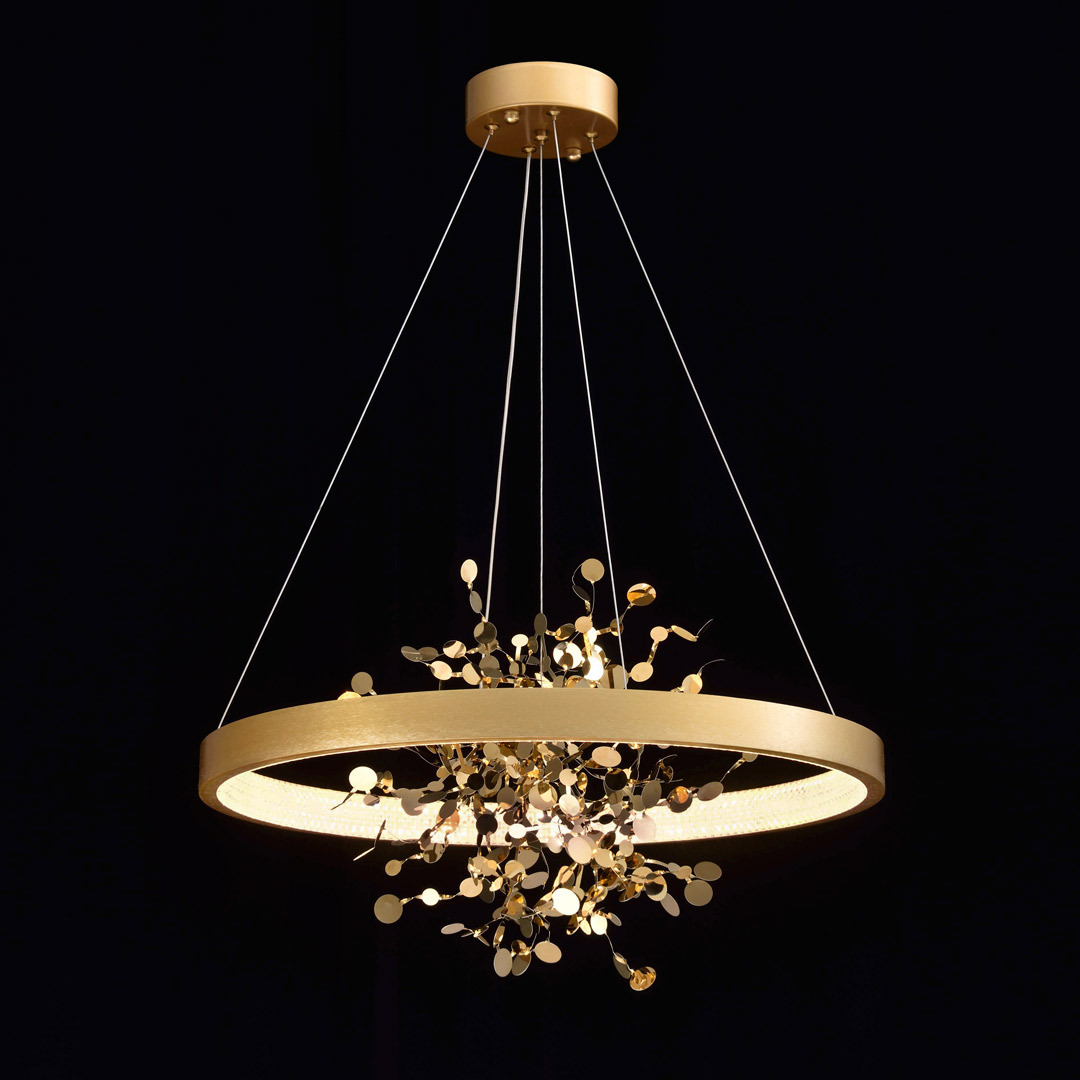 Люстра подвесная Cloyd TURBULENT (Клойд Турбулент) C1 / арт.10783, ø: 80 см. высота: 45 см (подвес в комплекте - до 135 см), источник света: LED 40 Вт, цвет металла - латунь. Гарантия: 1 год.