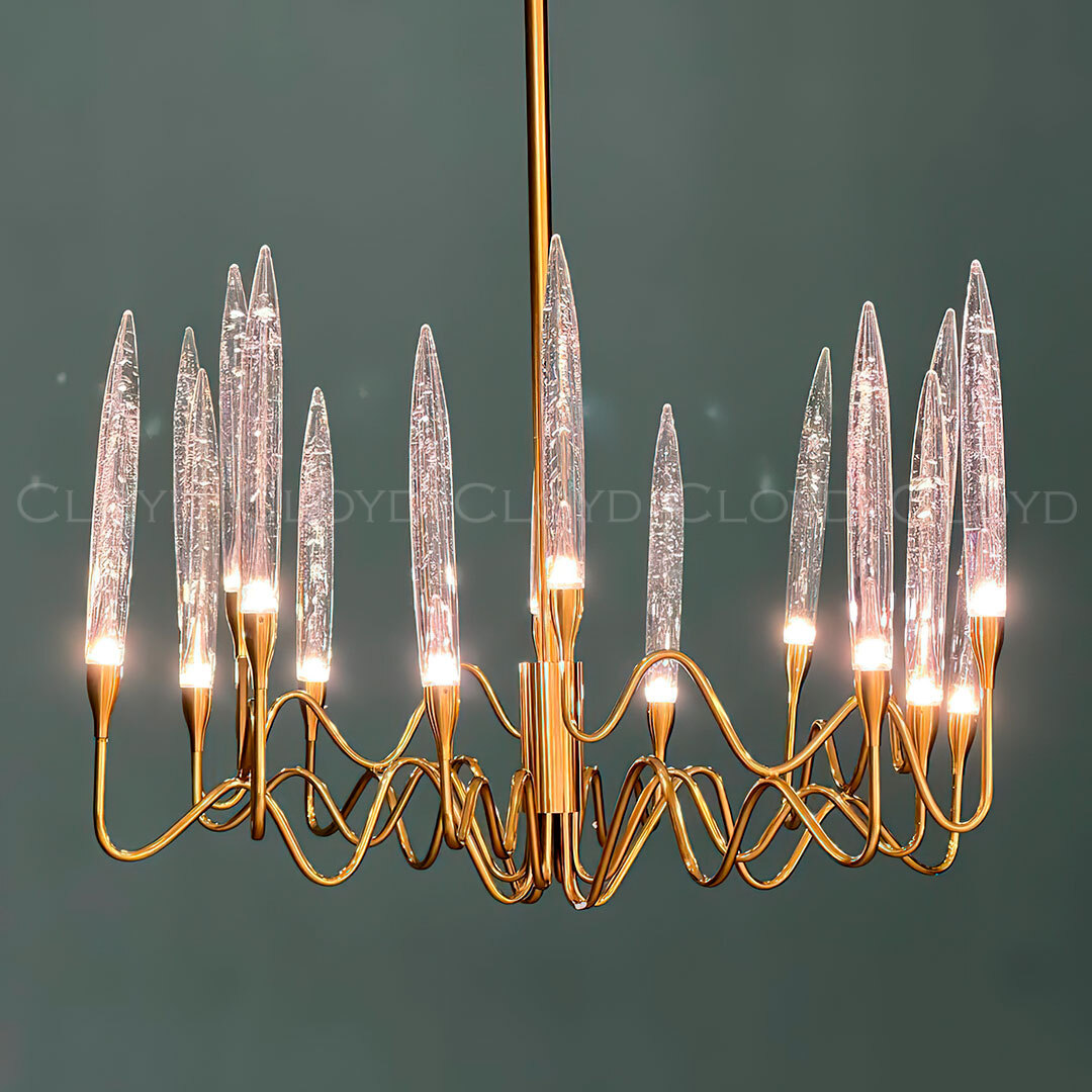 Люстра подвесная Cloyd ZOAR (Клойд Зоар) C16 / арт.10765, ø: 70 см. высота: 115 см, источник света: G4 х 16 шт, цвет металла - латунь. Люстра имеет сборный шток состоящий из трех частей, что позволяет регулировать ее высоту. Гарантия: 1 год.
