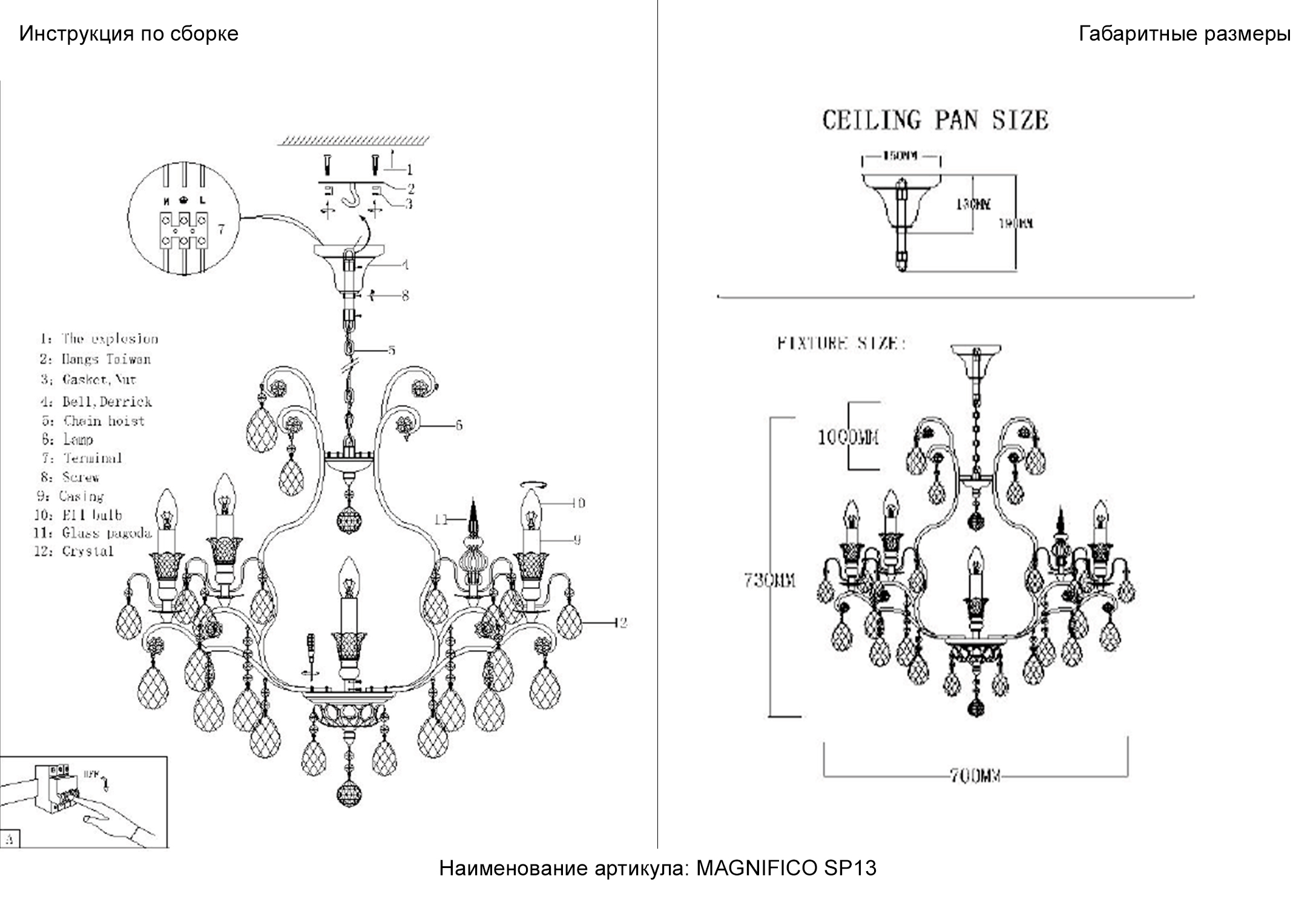 Люстра Crystal Lux MAGNIFICO SP13 BLACK/TRANSPARENT