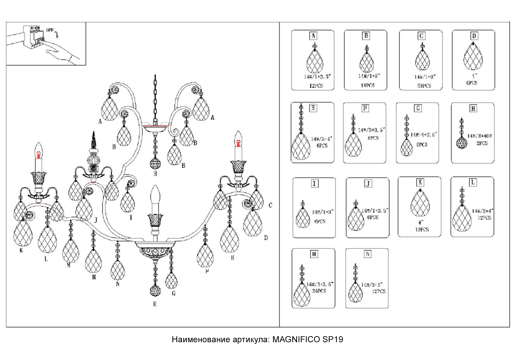 Люстра Crystal Lux MAGNIFICO SP19 BLACK/TRANSPARENT